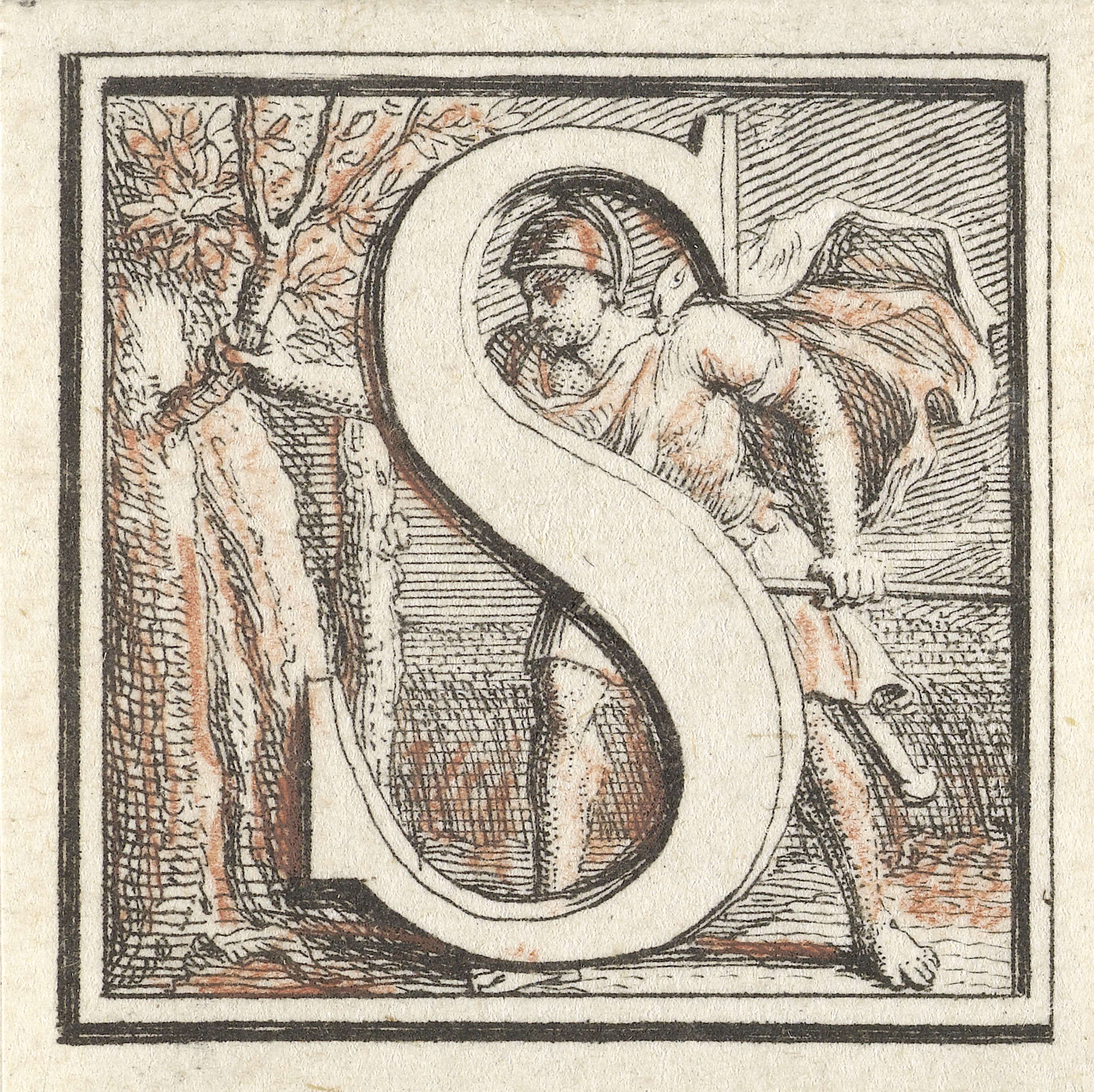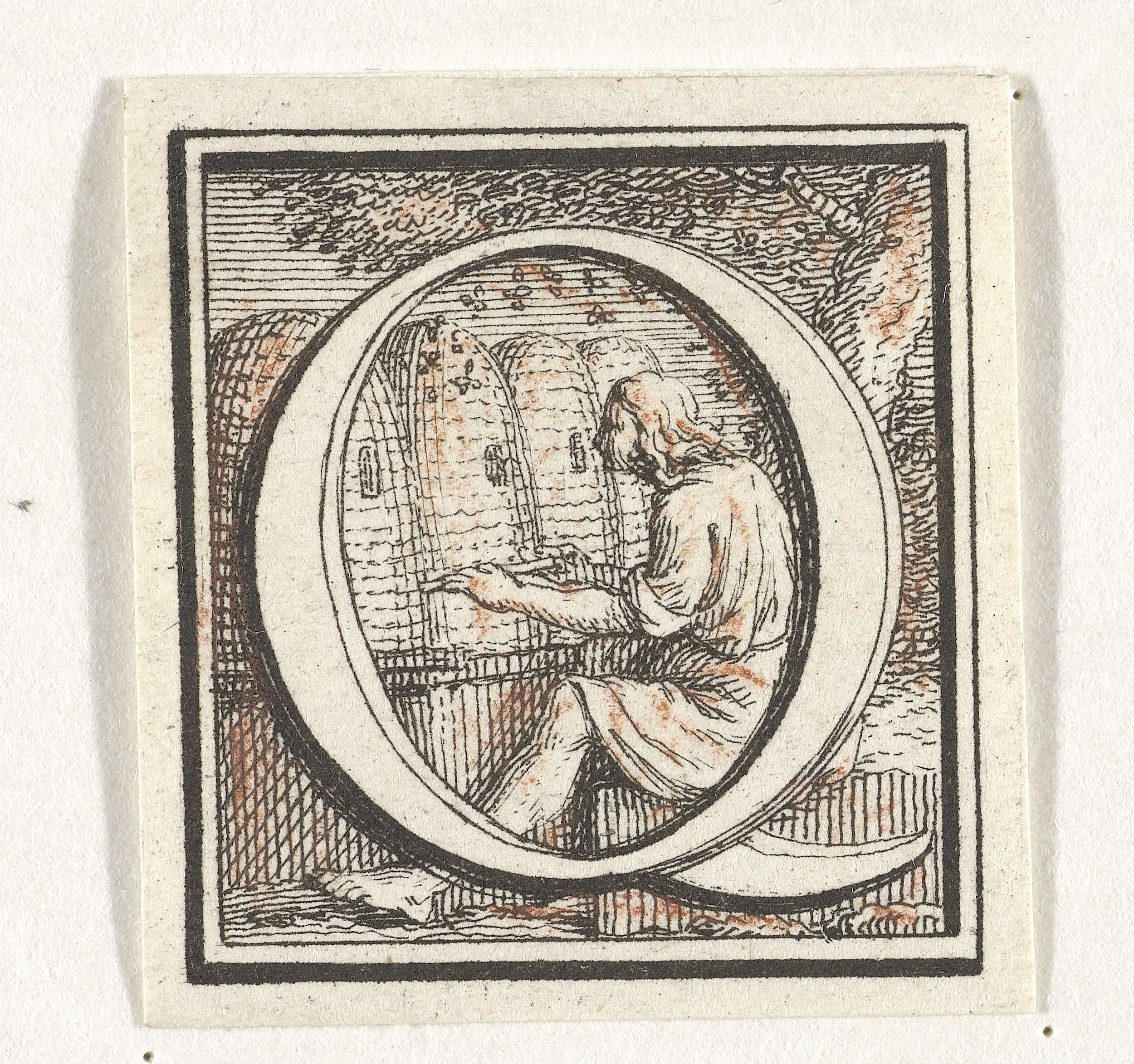 Hoofdletter O met beeltenis van een figuur en bijenk...