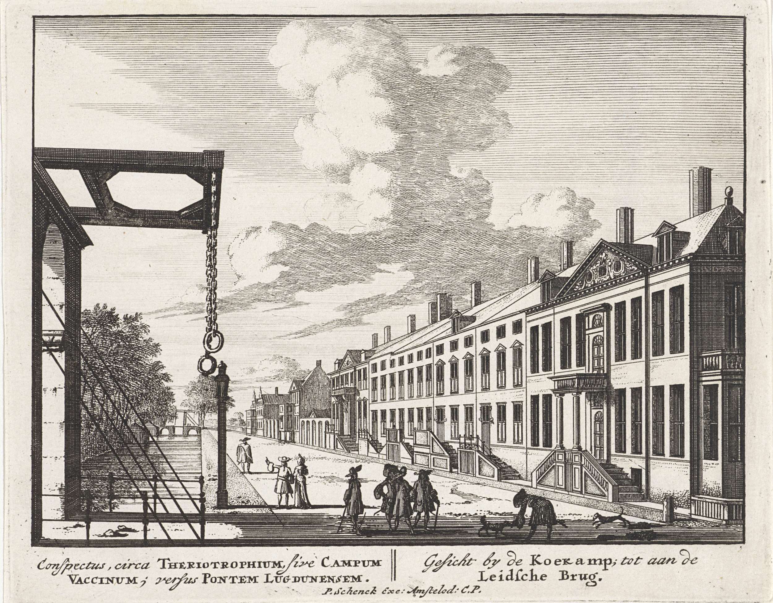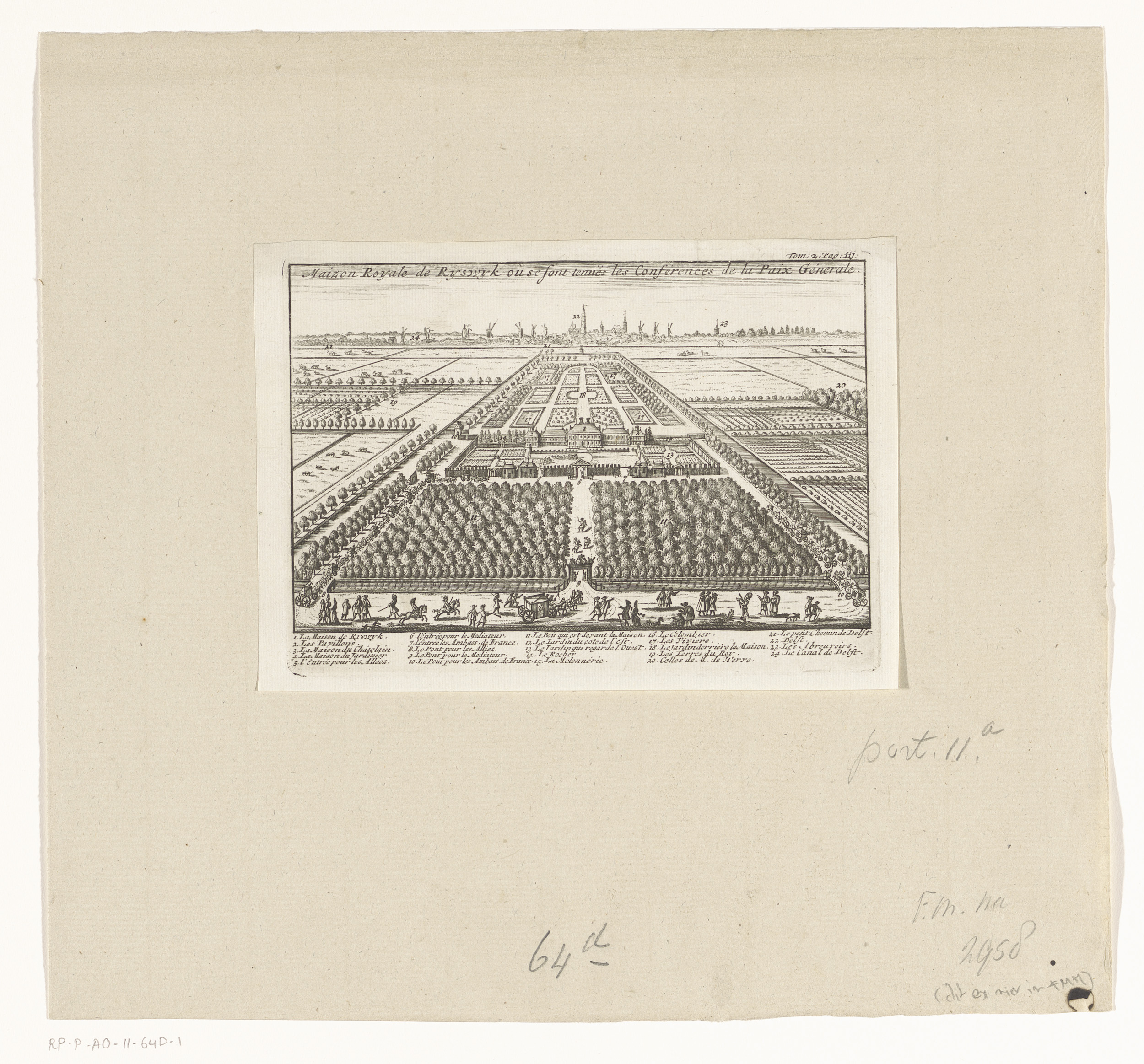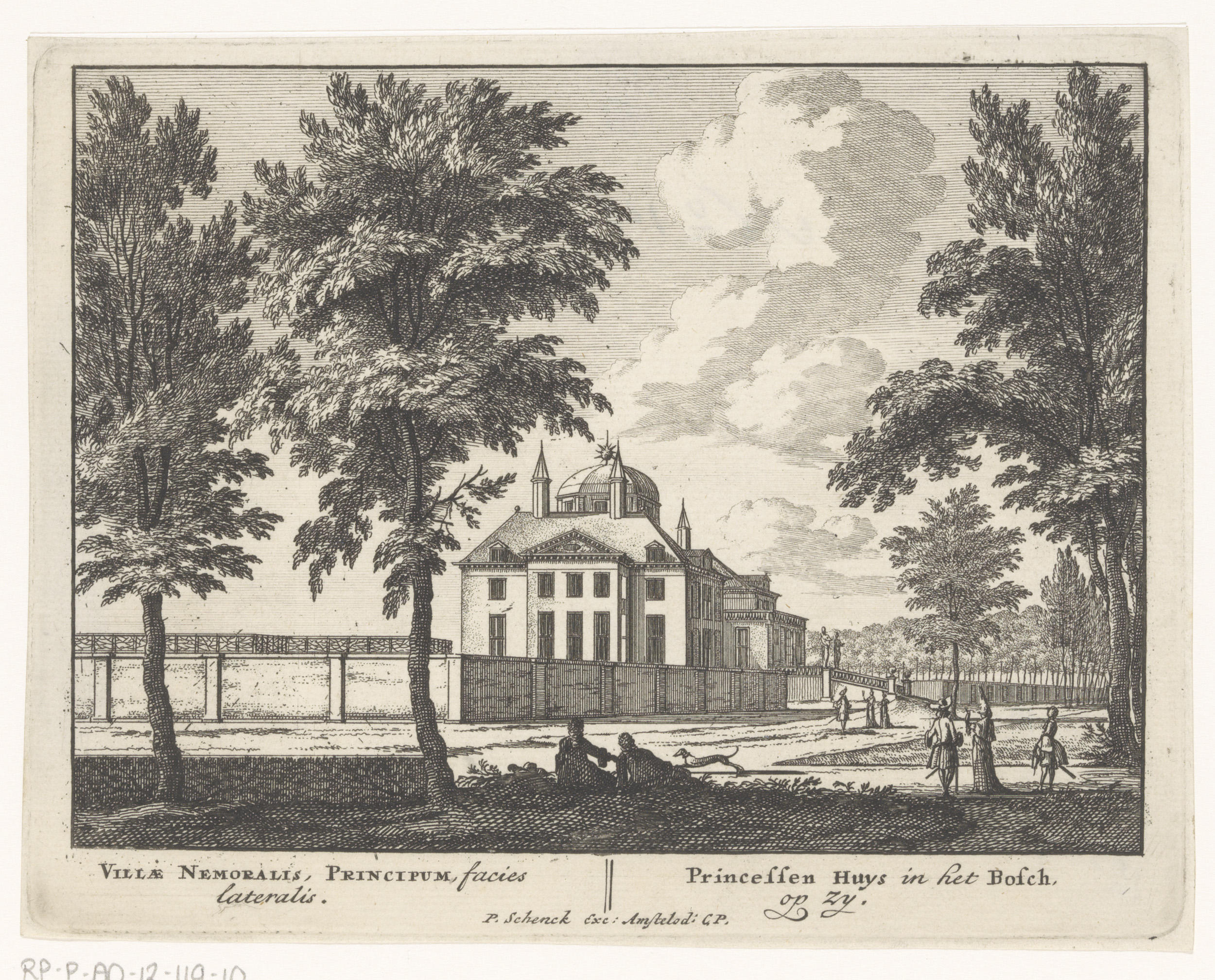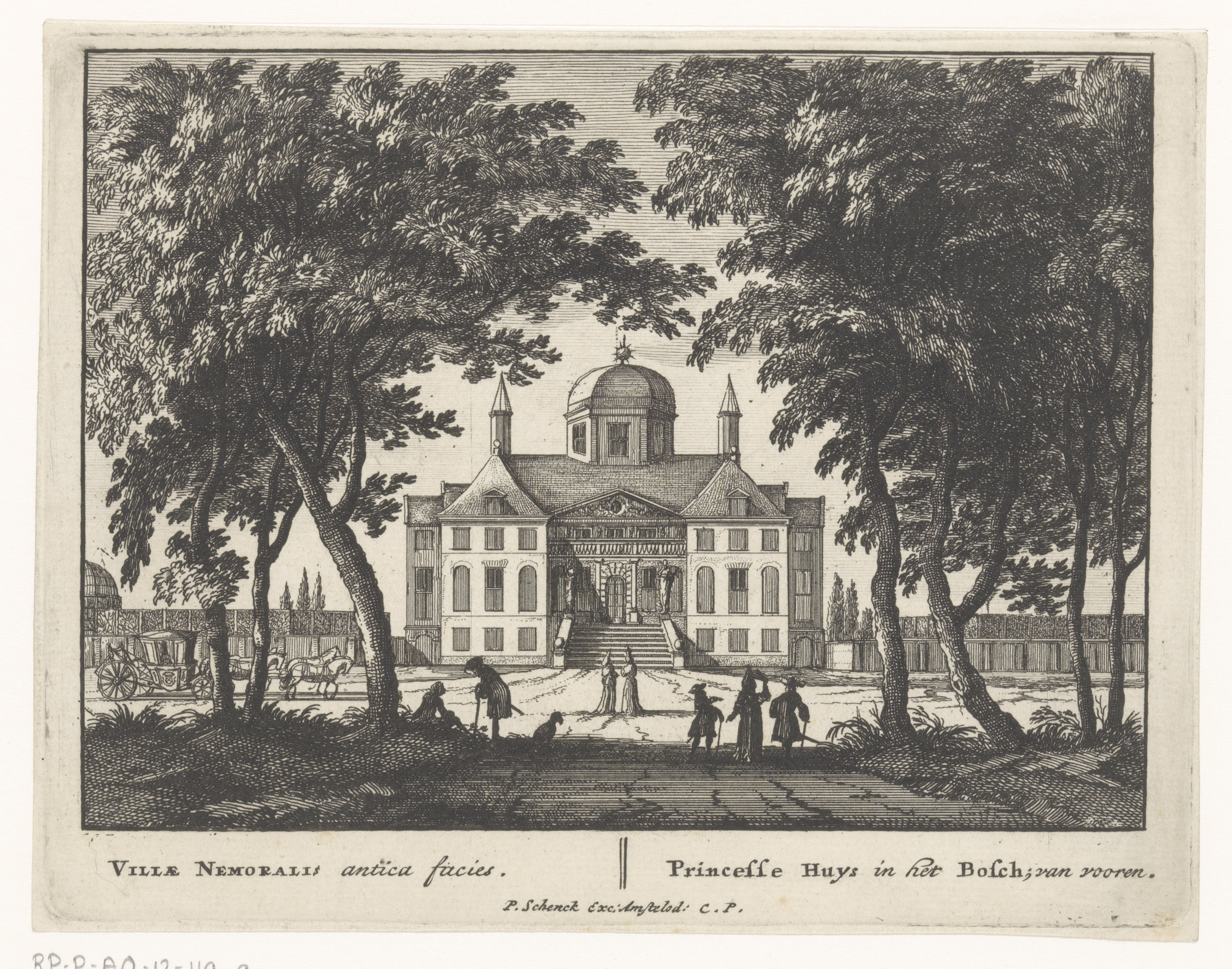 Gezicht op de voor- en zijkant van Paleis Honselaars...