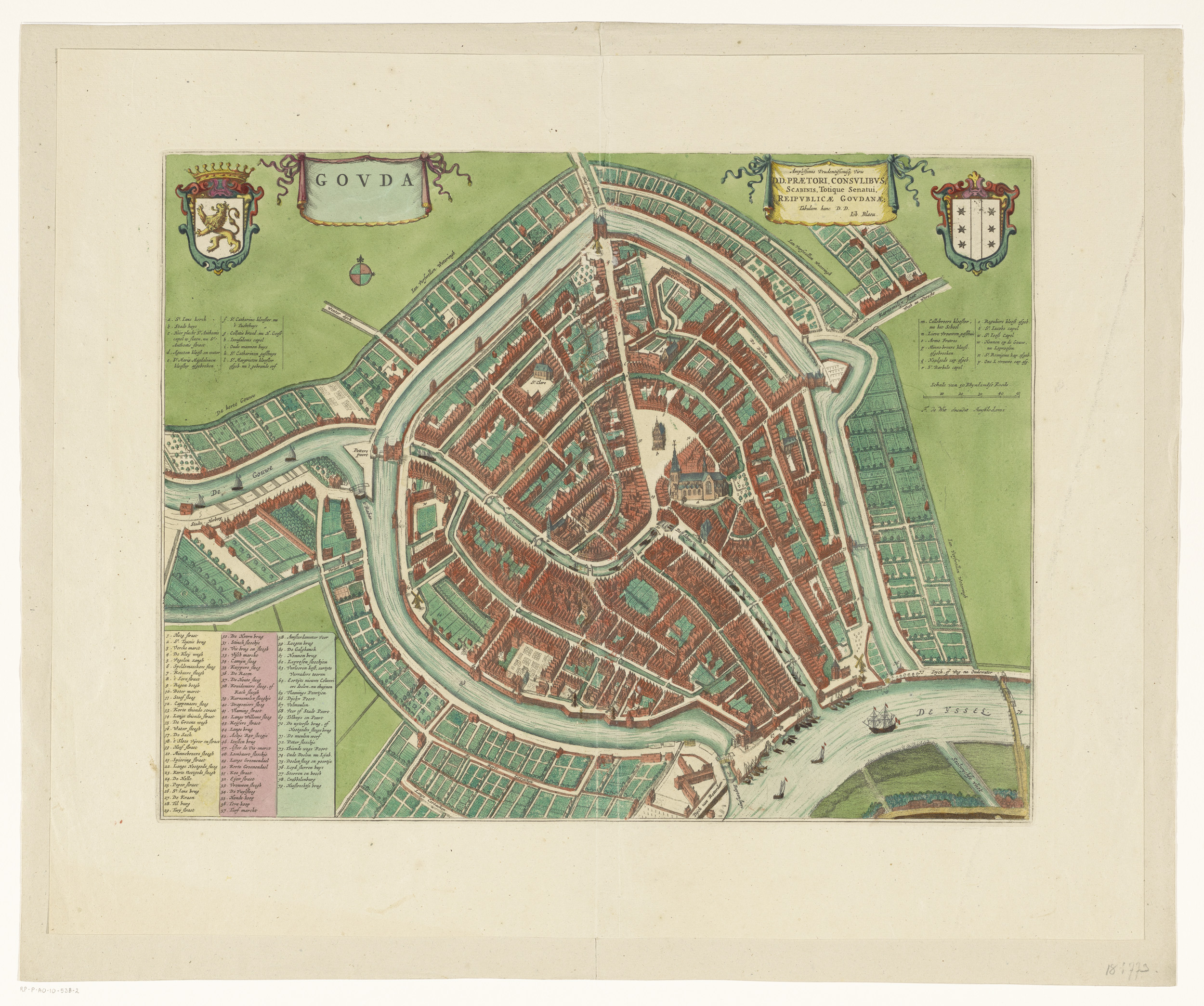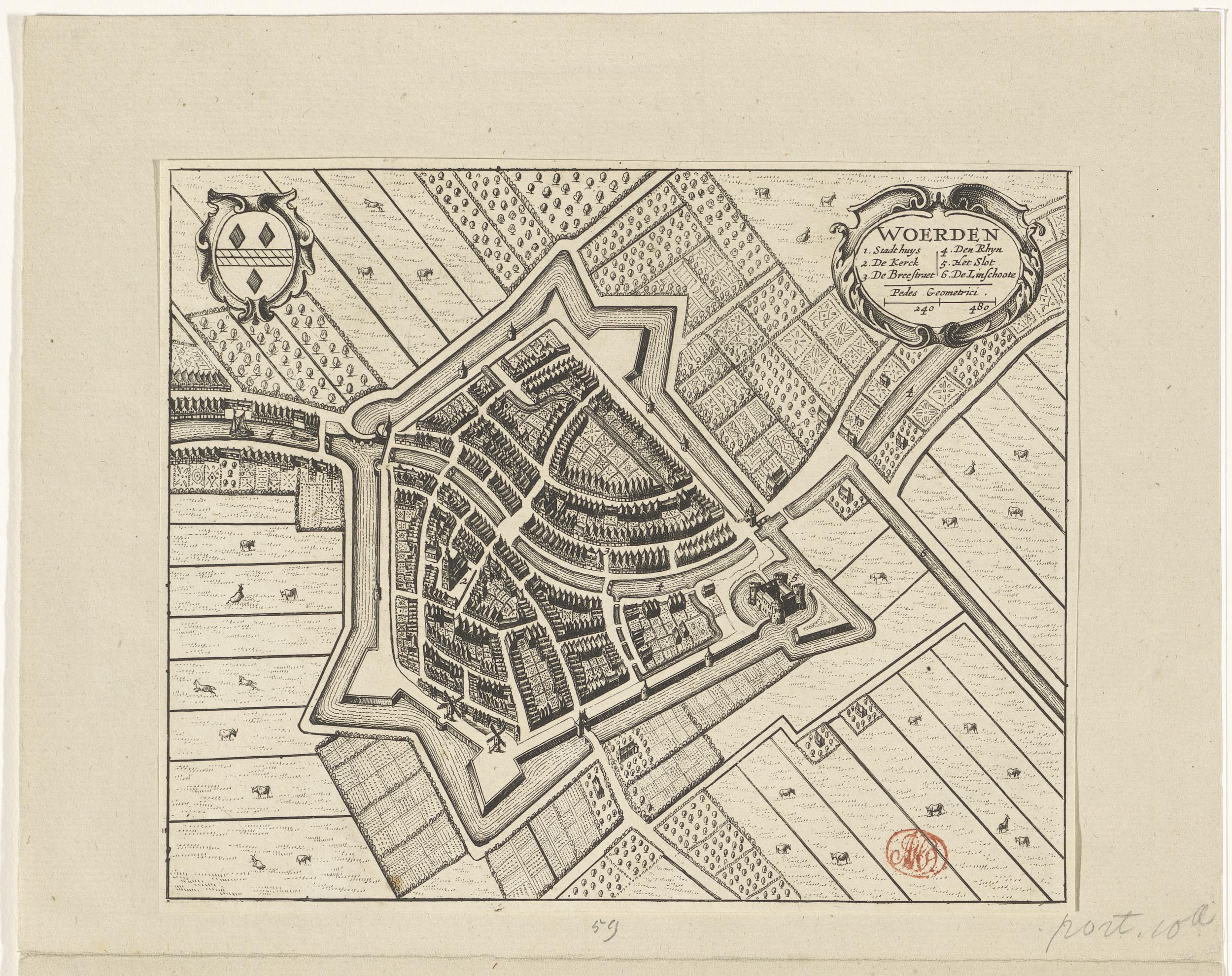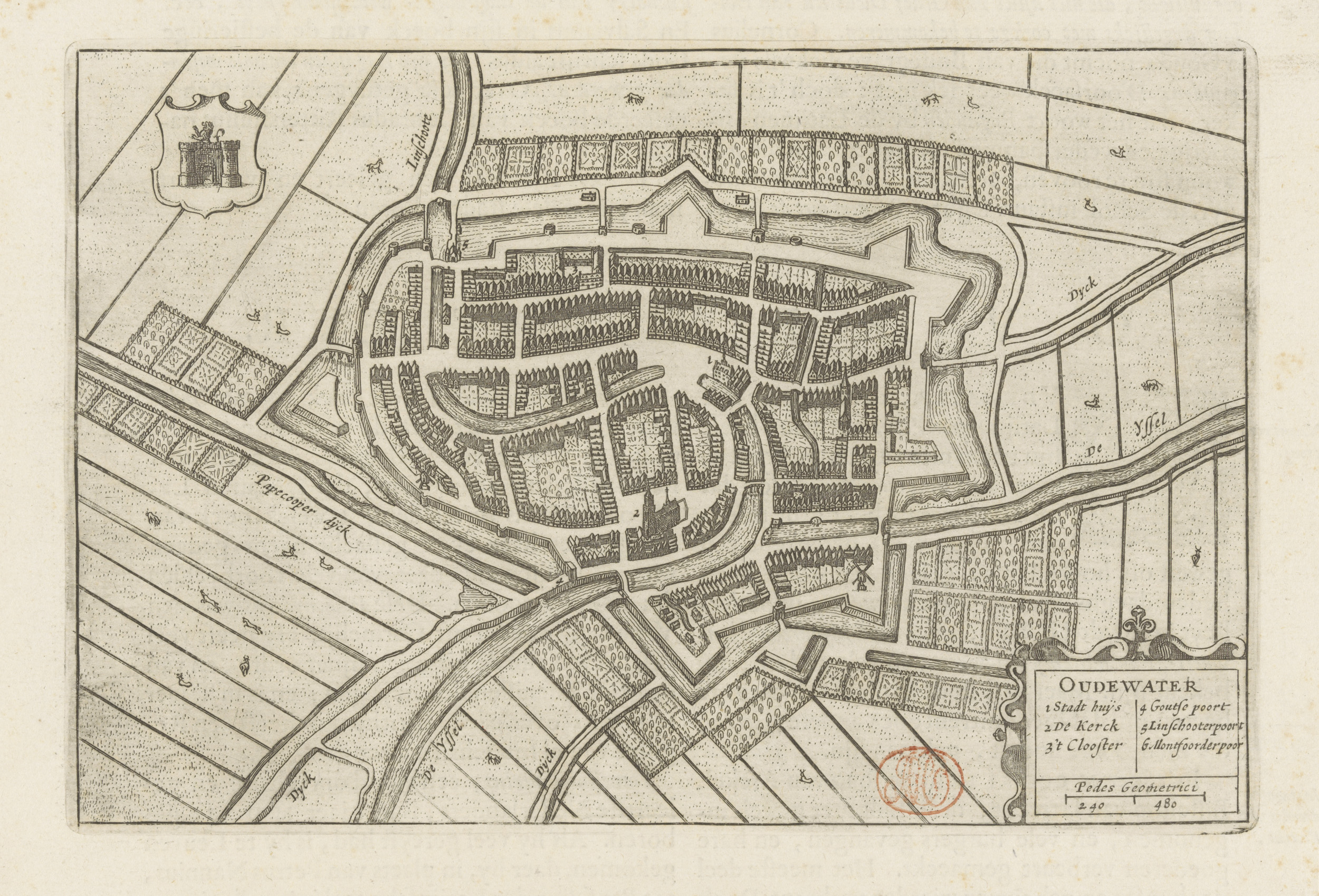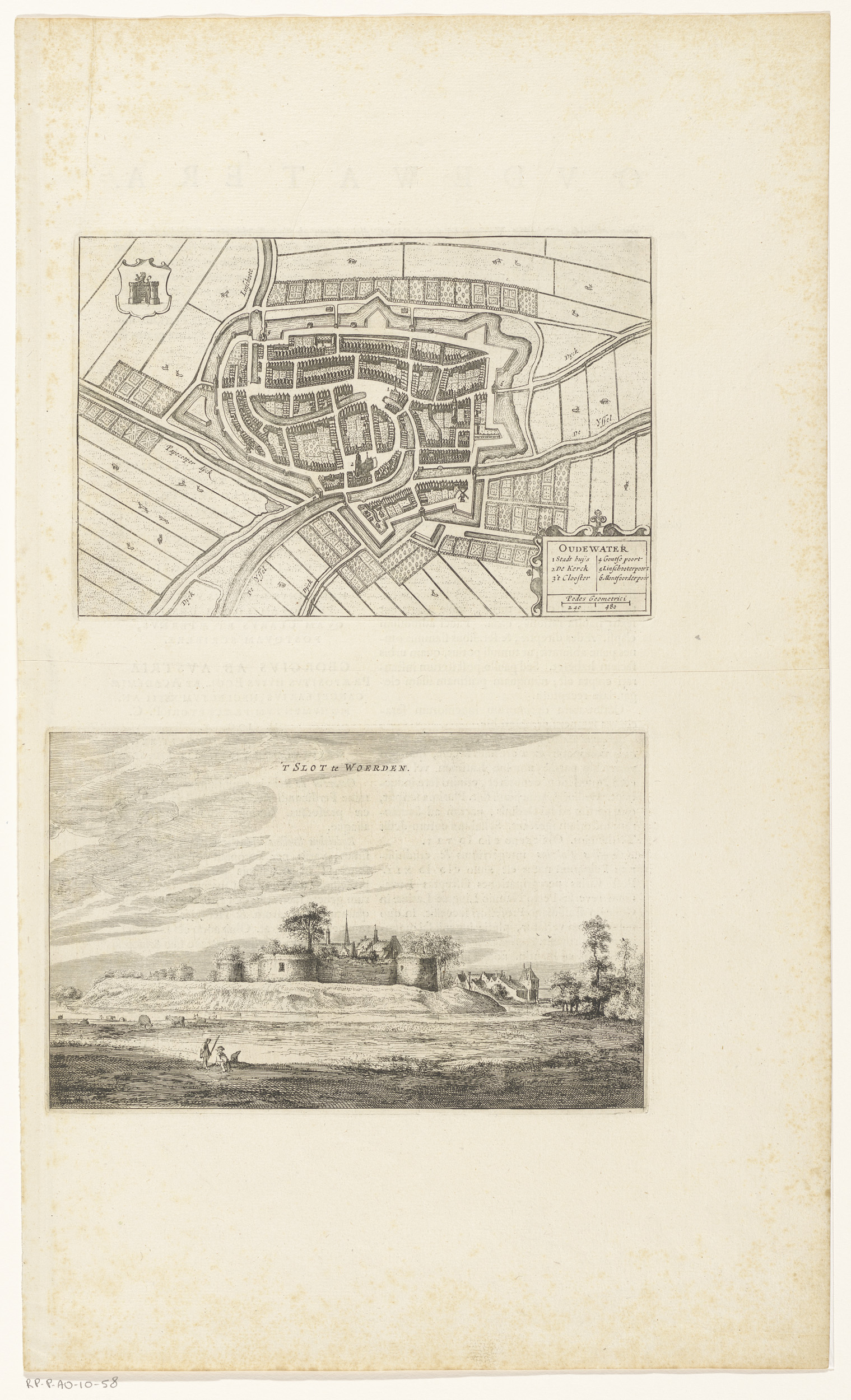 Blad met plattegrond van Oudewater en gezicht op Slo...