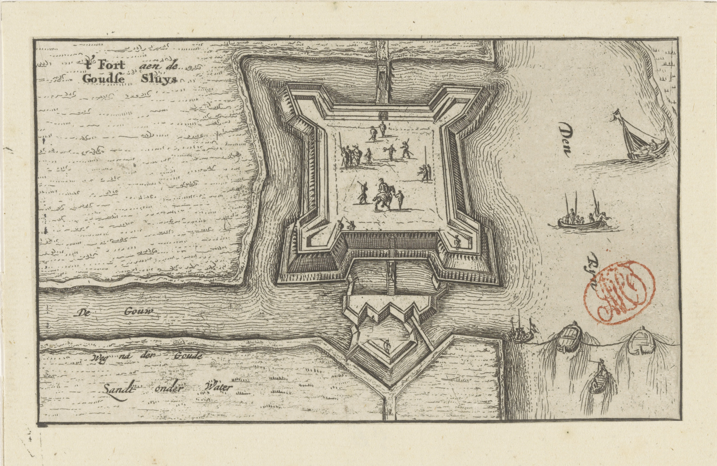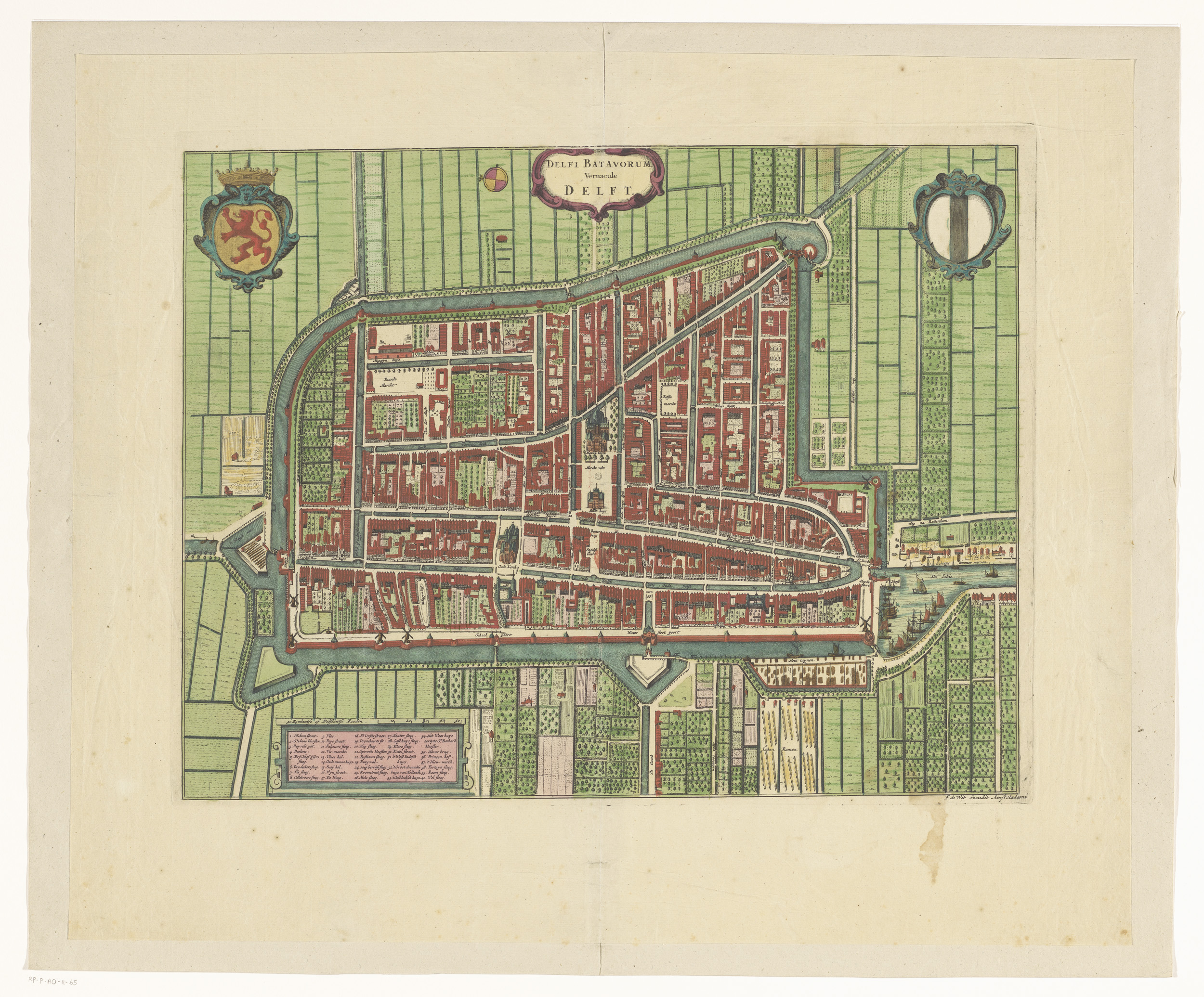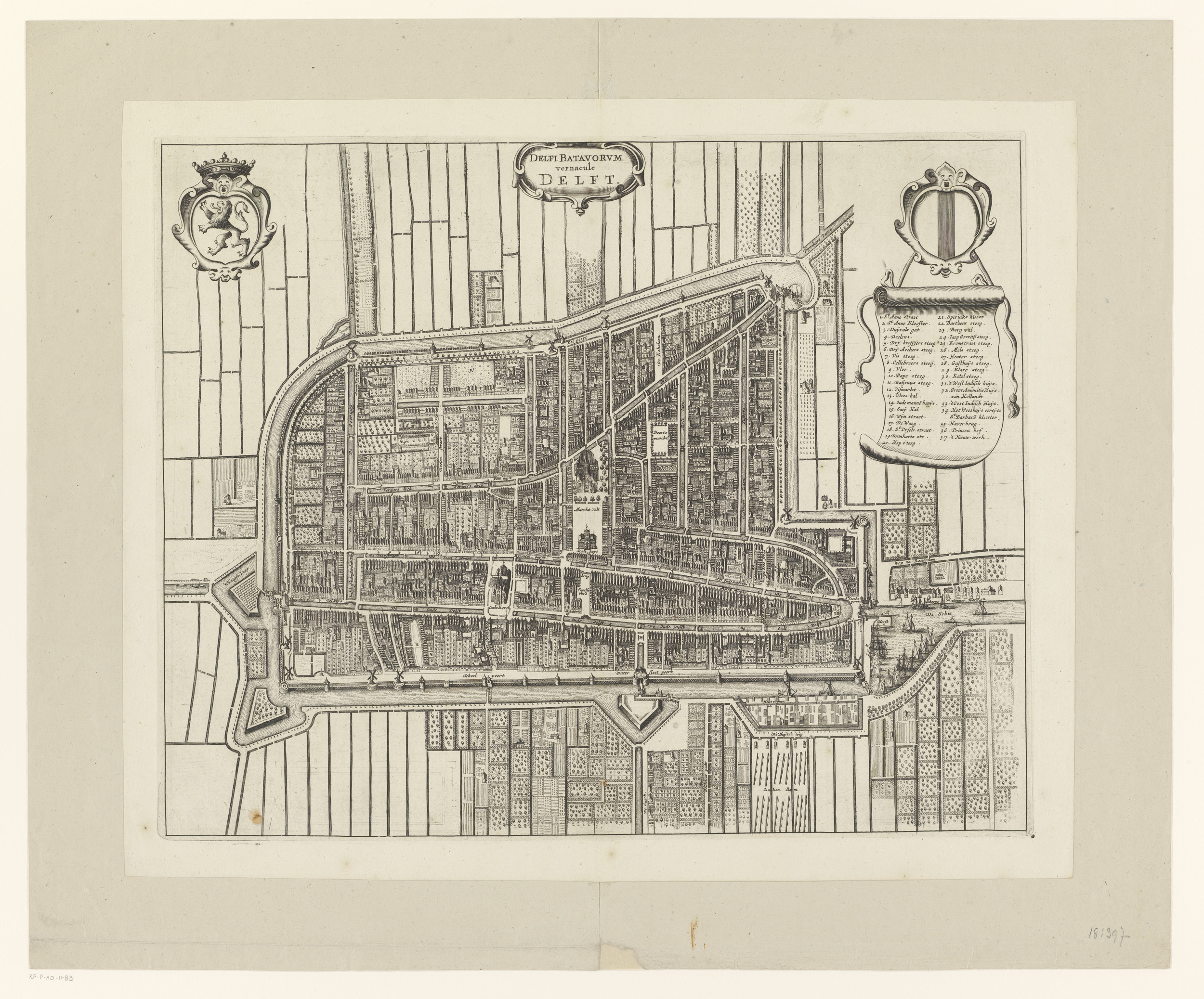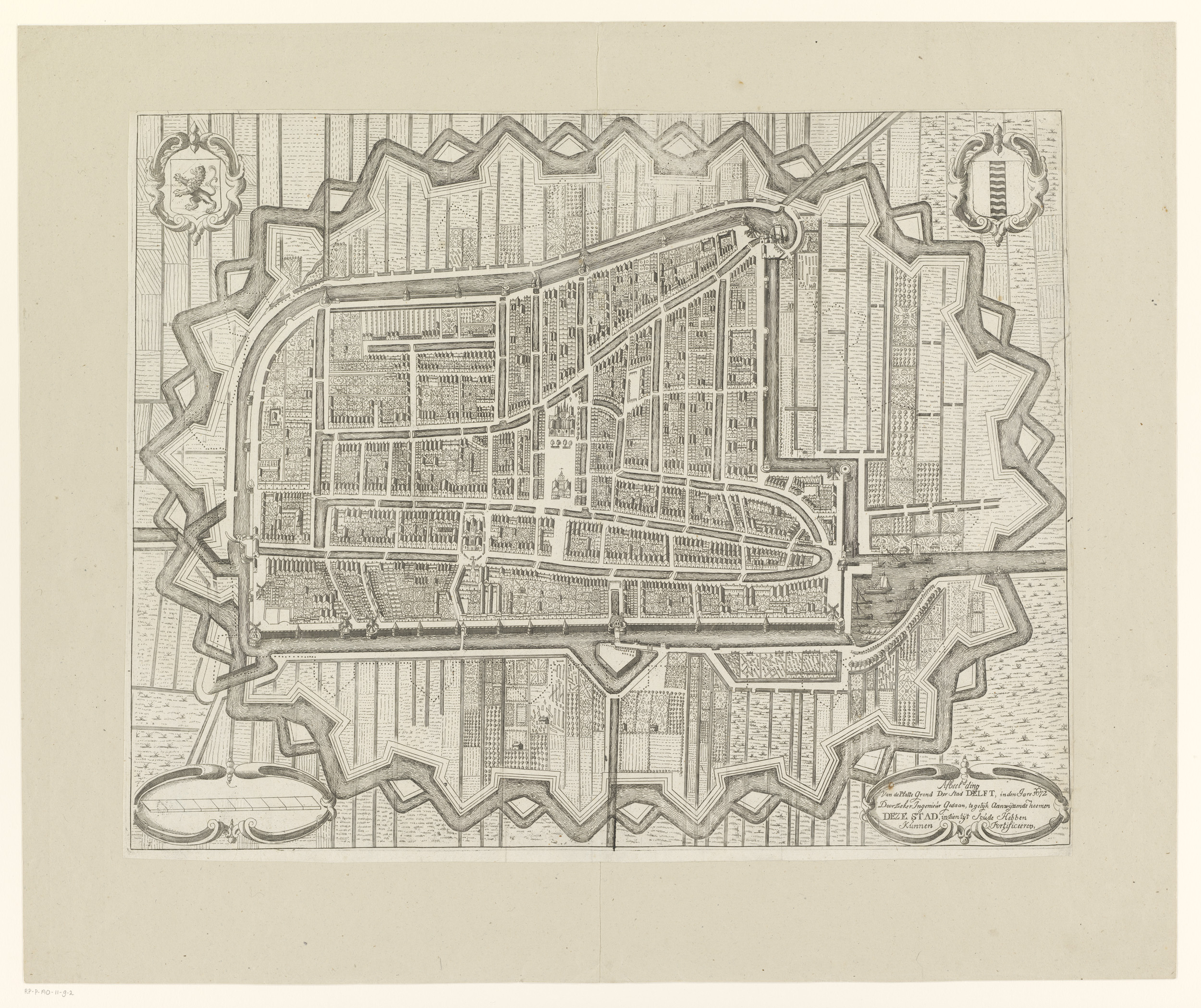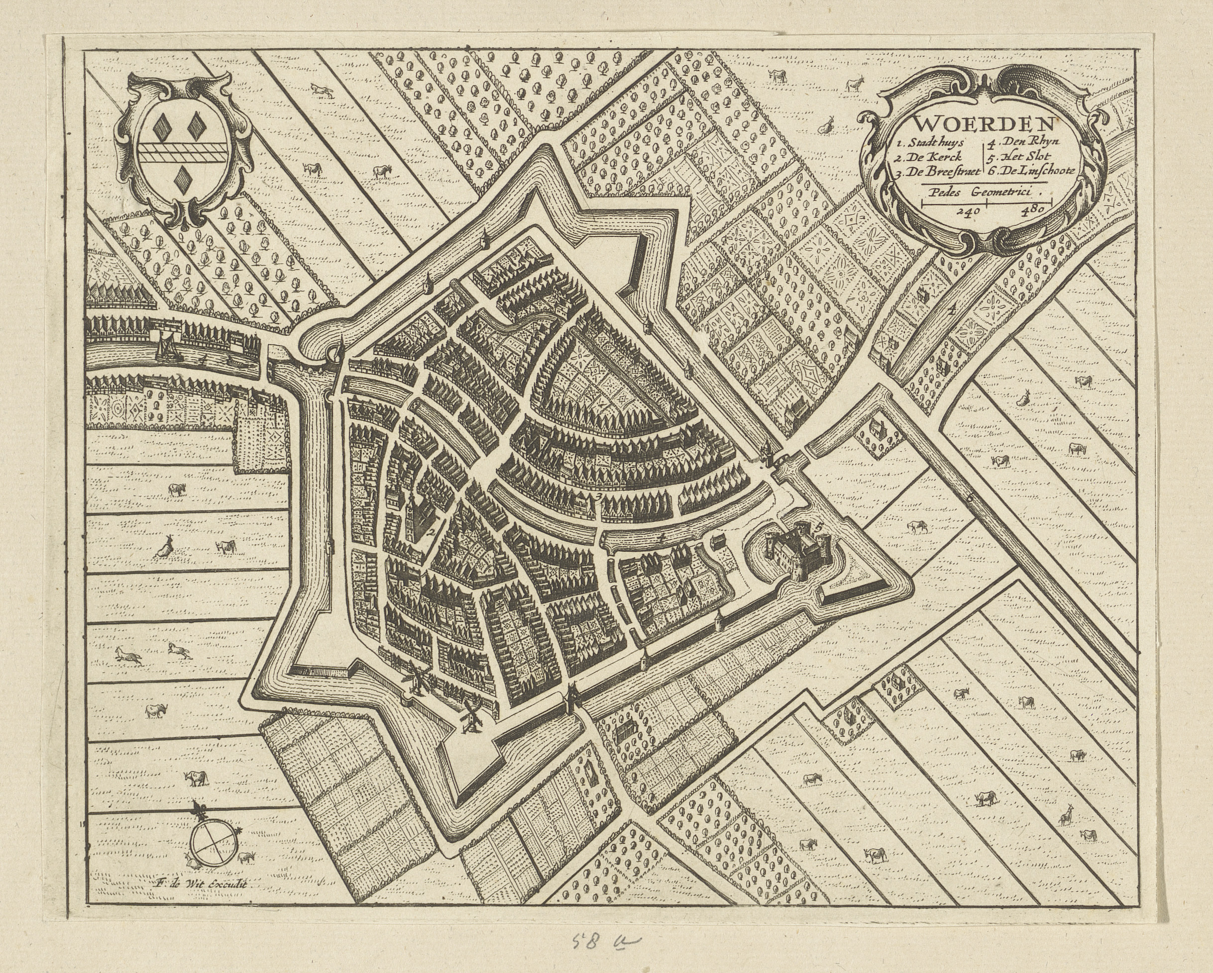 Blad met plattegrond van Oudewater en gezicht op Slo...