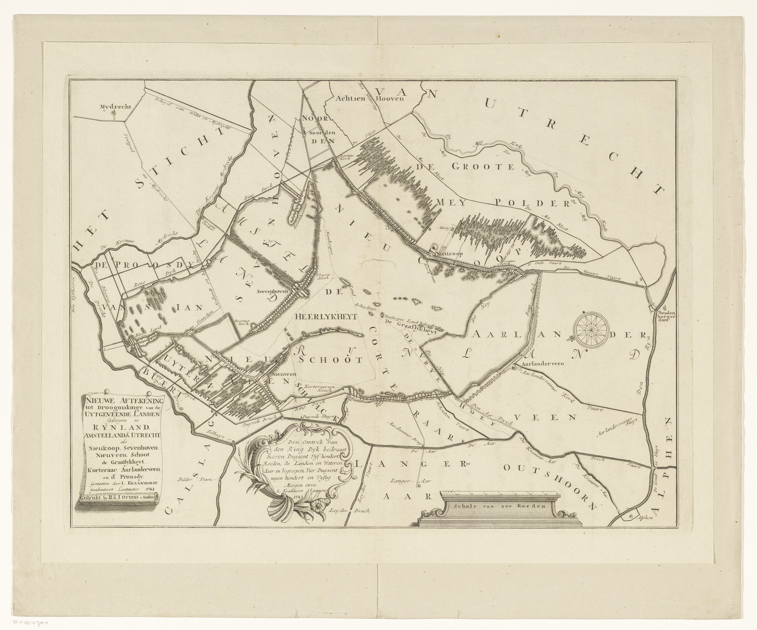 Kaart van de uitgeveende landen rond Nieuwkoop, Zeve...