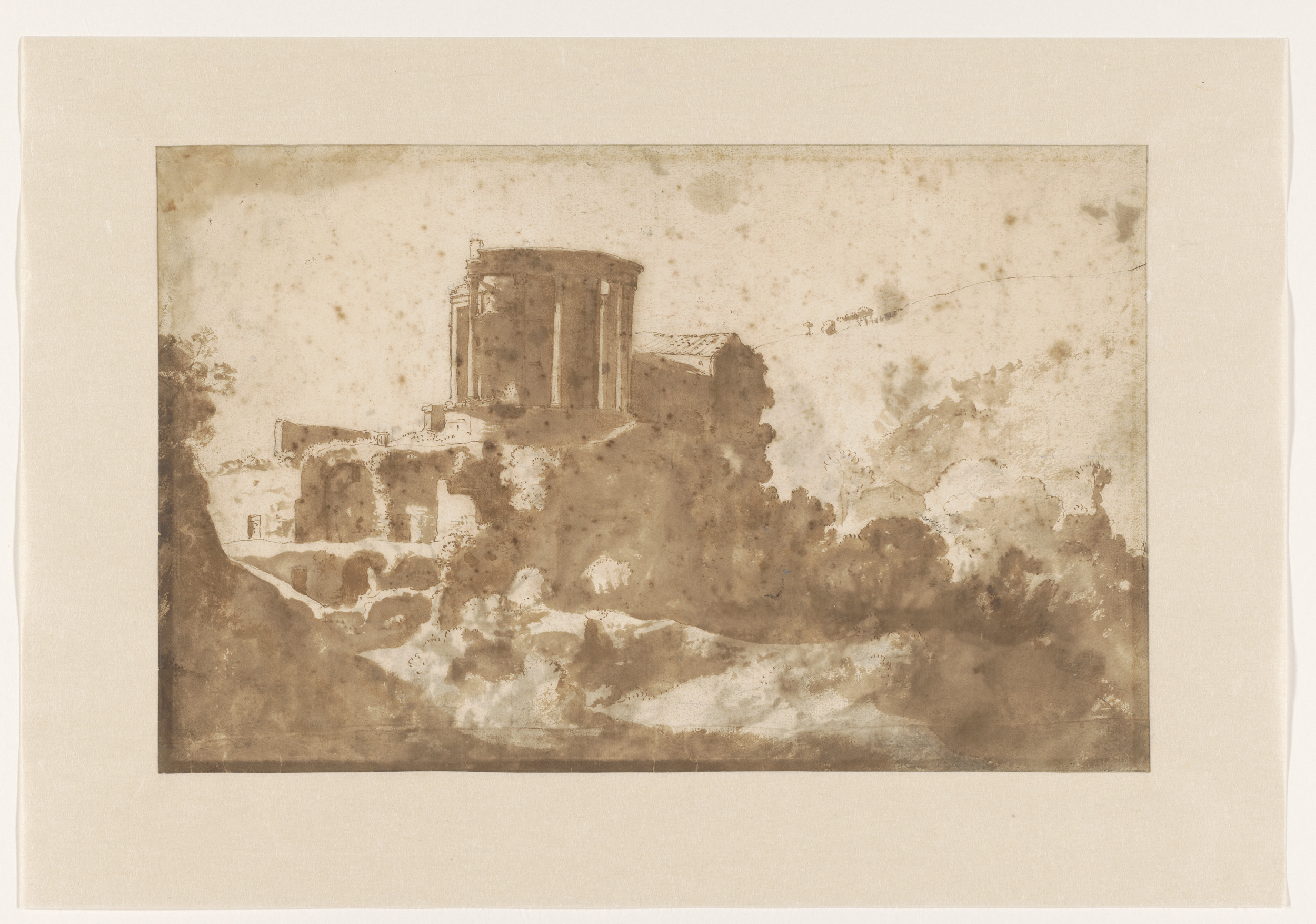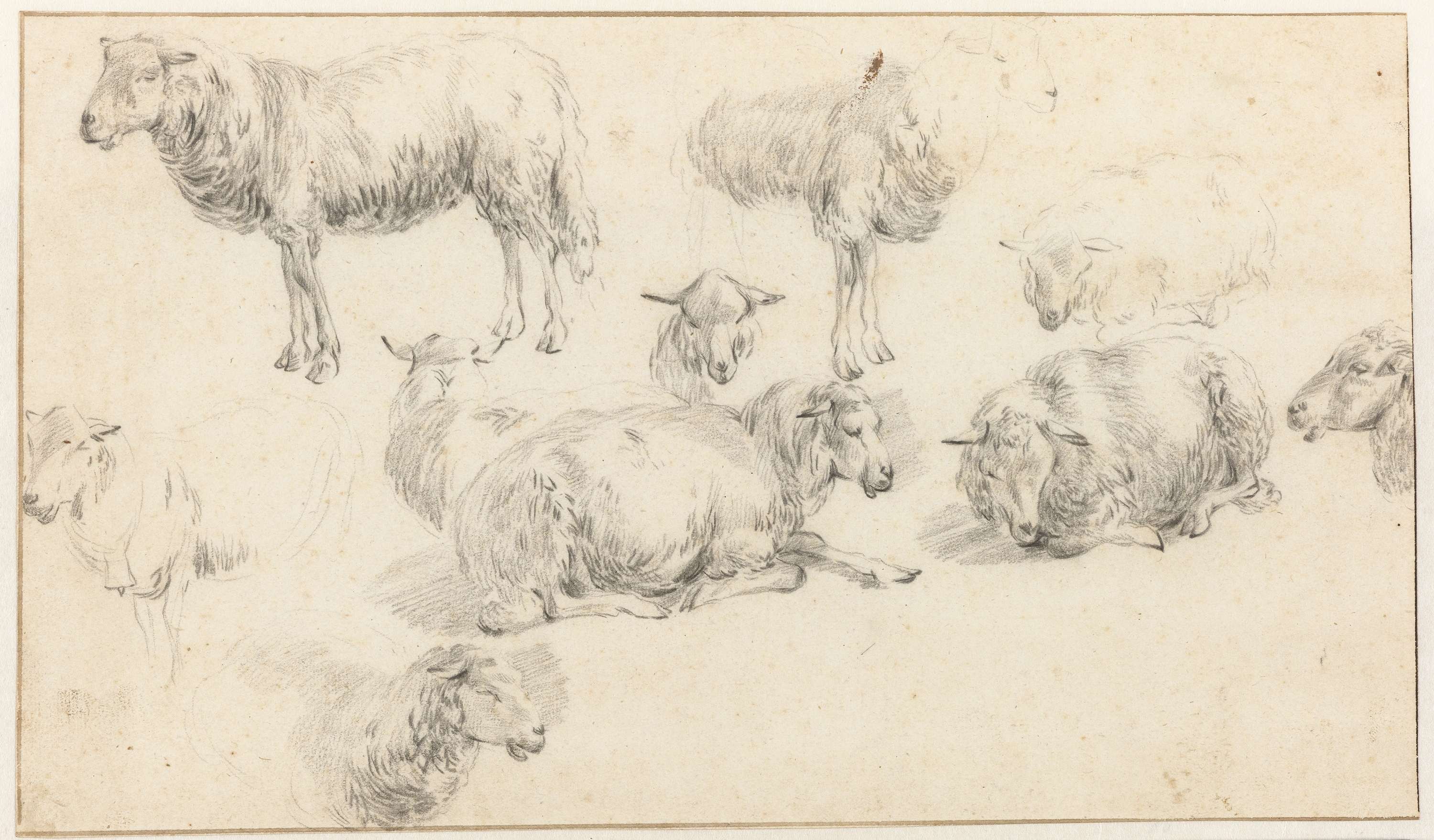 Studieblad met het hoofd van een oude vrouw en twee ...