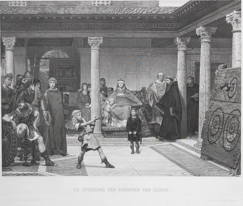 Kunstplaat over opvoeding der kinderen van Clovis. G...