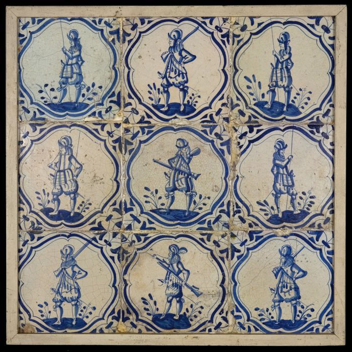 Tegelveld, negen tegels, blauw, krijgsmannen in acco...