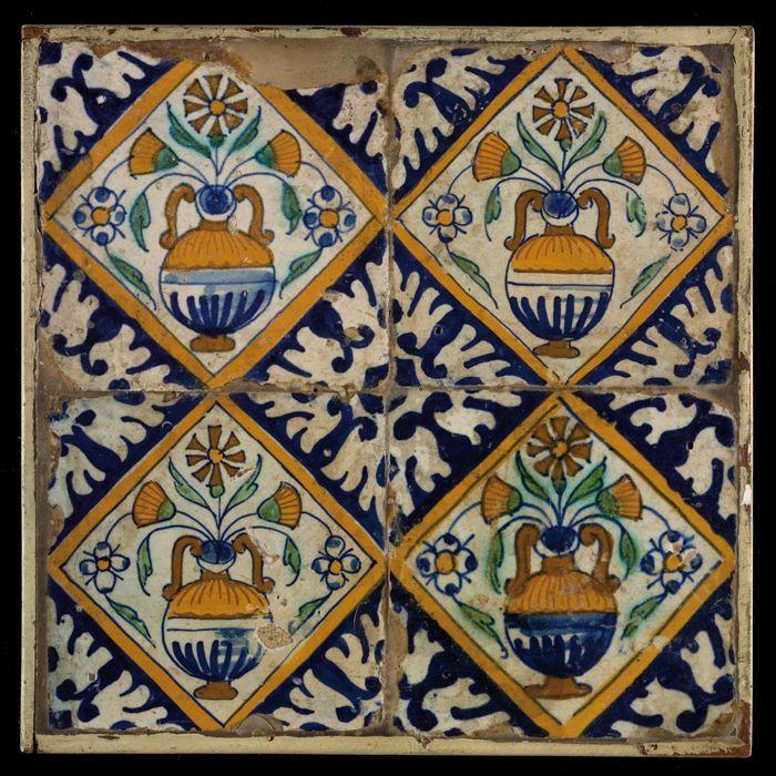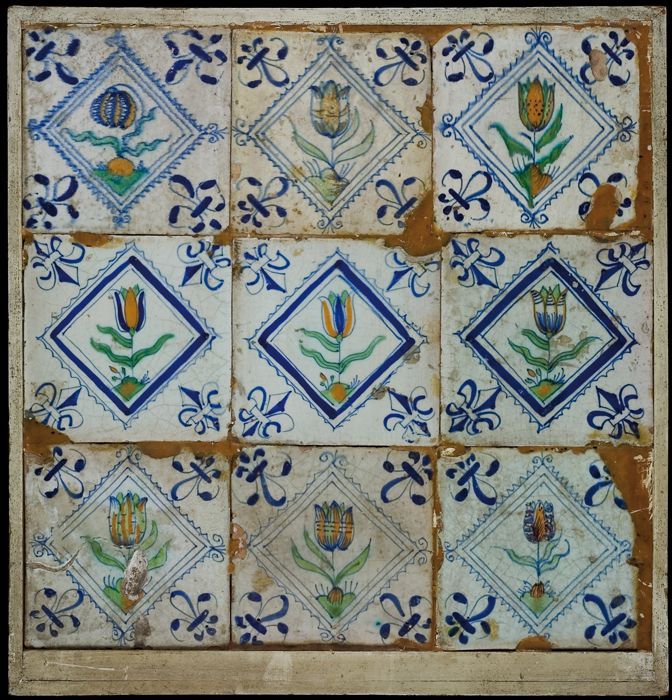 Tegelveld, negen tegels, blauw, krijgsmannen, hoekmo...