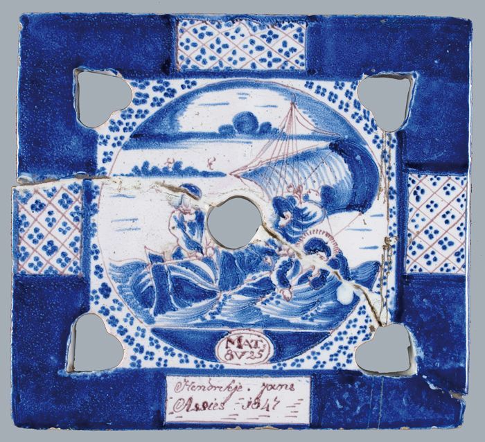 Geboortetegel met wonderbaarlijke visvangst en "Hend...