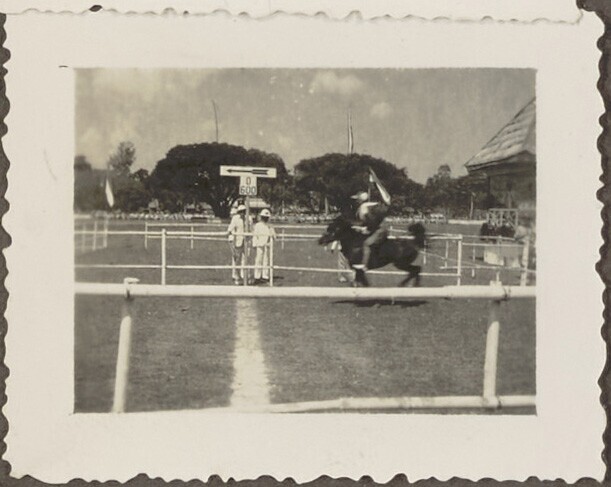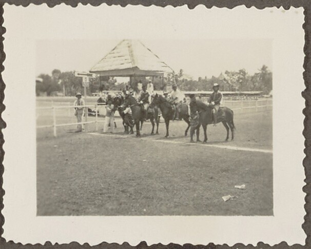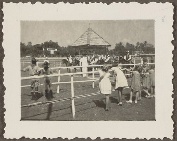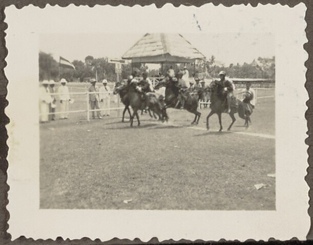 Javaanse en Europese toeschouwers bij de paardenrace