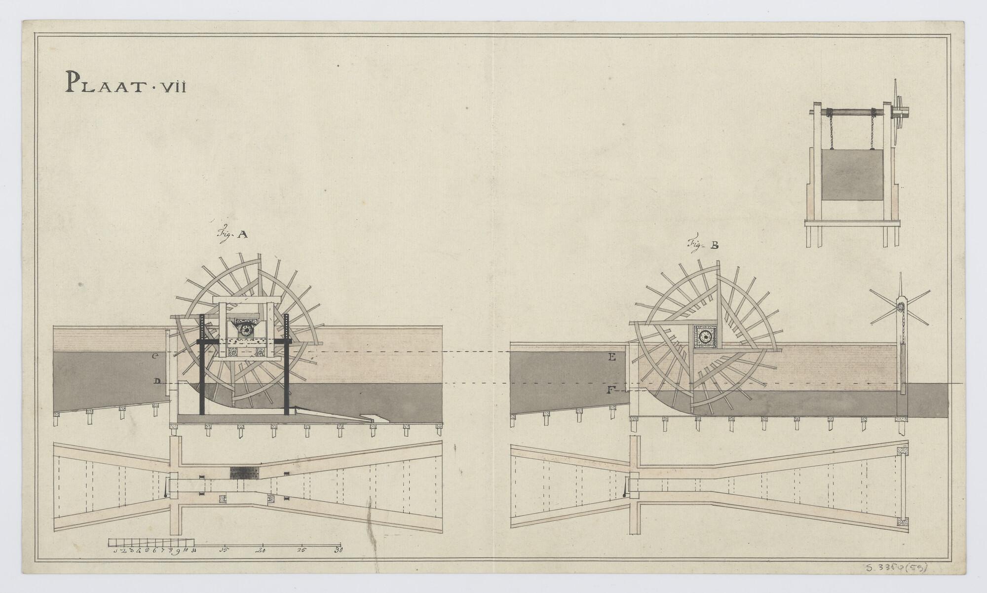Tekening van een sluizencomplex, onbekroonde inzendi...