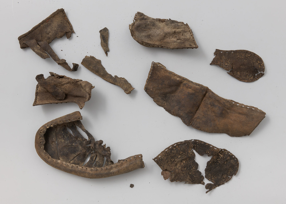 Fragmenten, grond/aardewerk/leer/been/ijzer/steen,