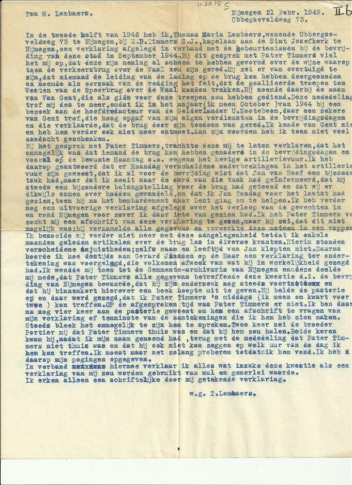 brief T.M.Lomaers, 21 februari 1949 met 2 afscrhiften