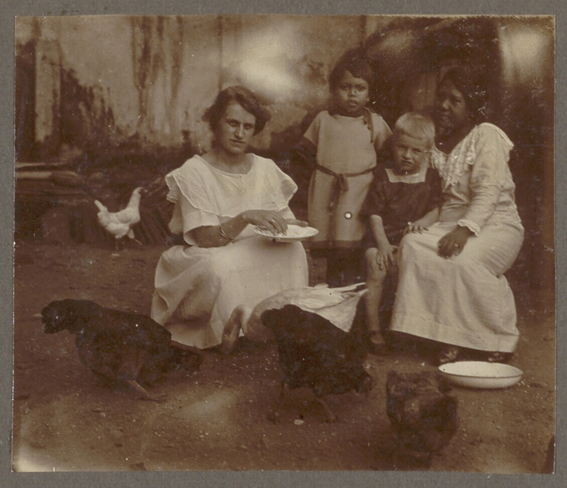Europese en Javaanse vrouw met twee kindenen voeren ...