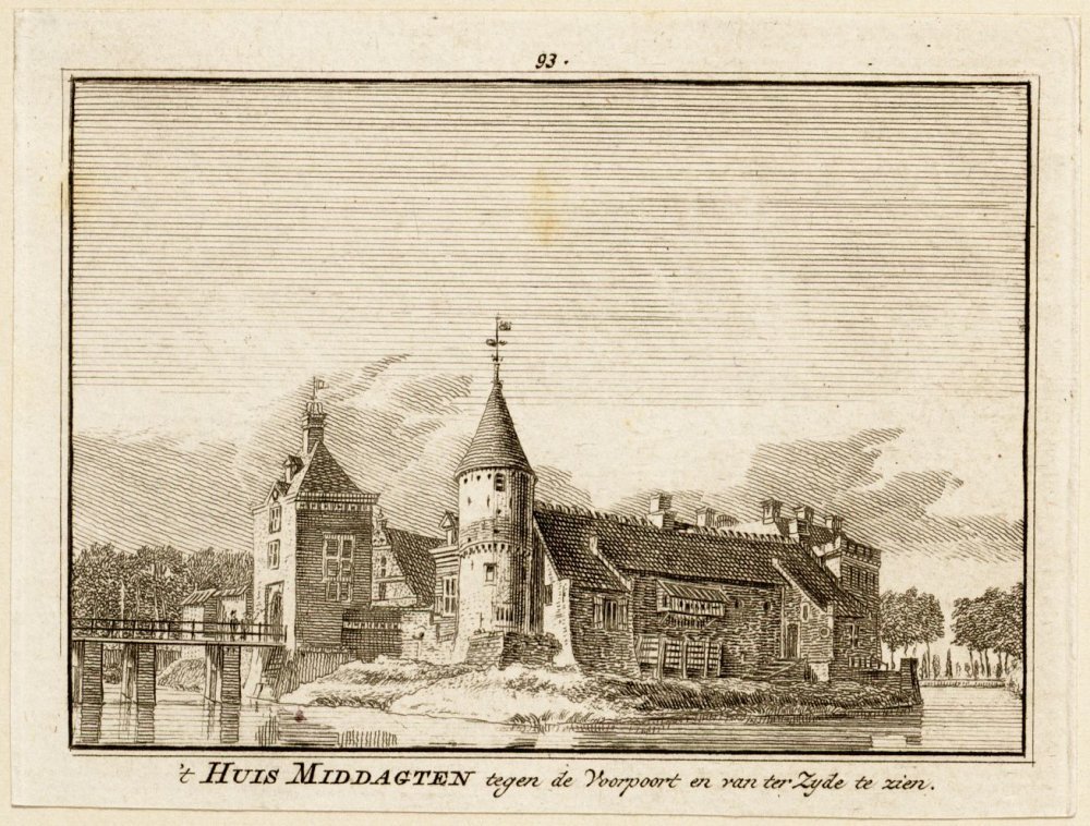 kasteel Ammerzoden, achterzijde met slotgracht. Grav...