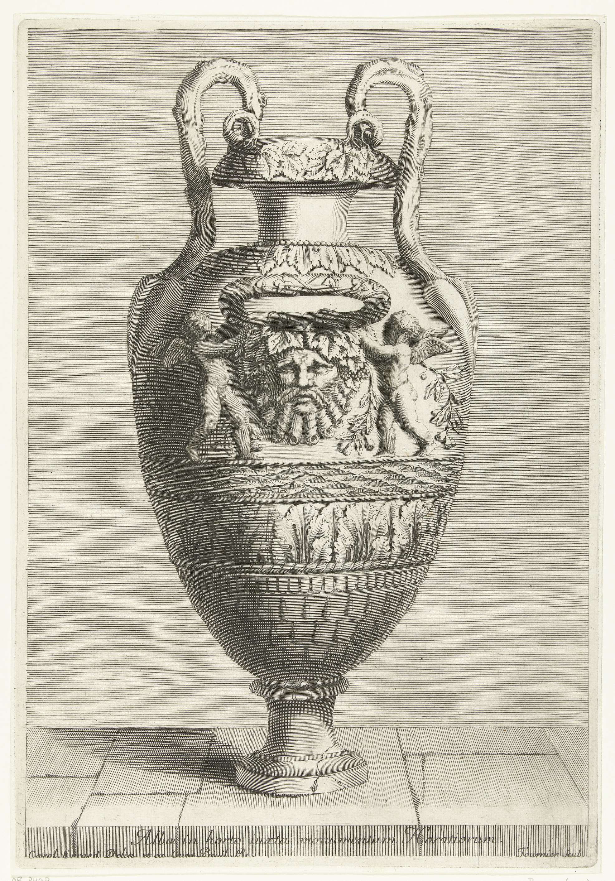 Urn met twee saterhoofden