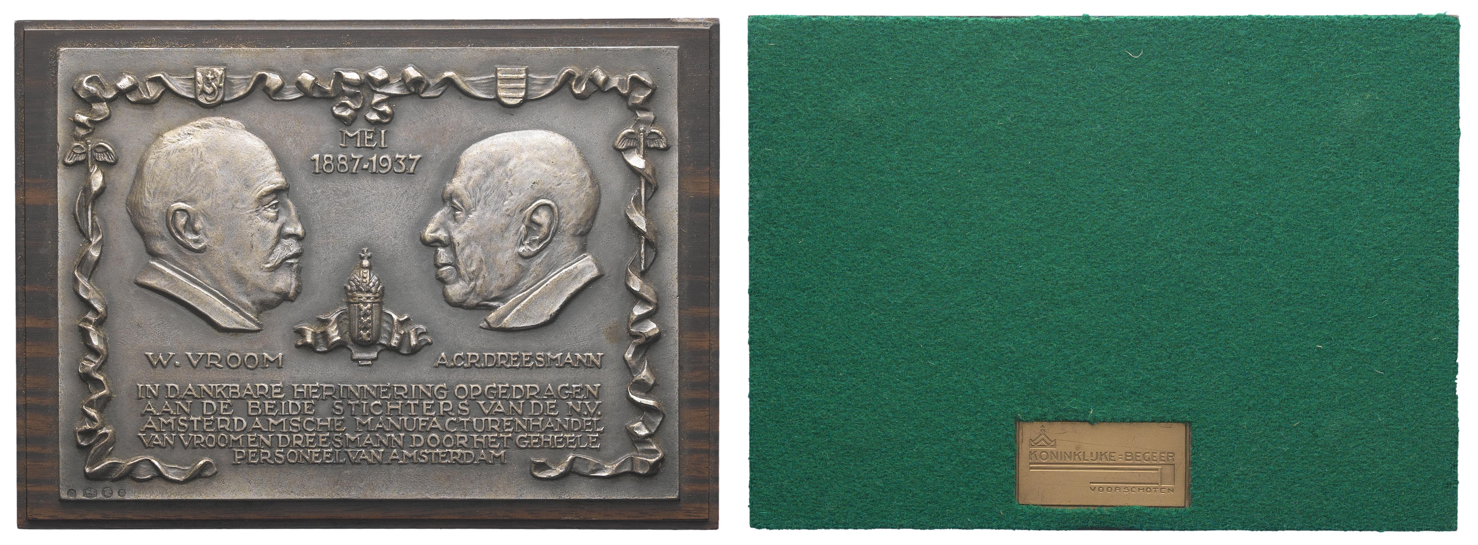 Plaquette ter ere van W. Vroom en A.C.R. Dreesmann, ...