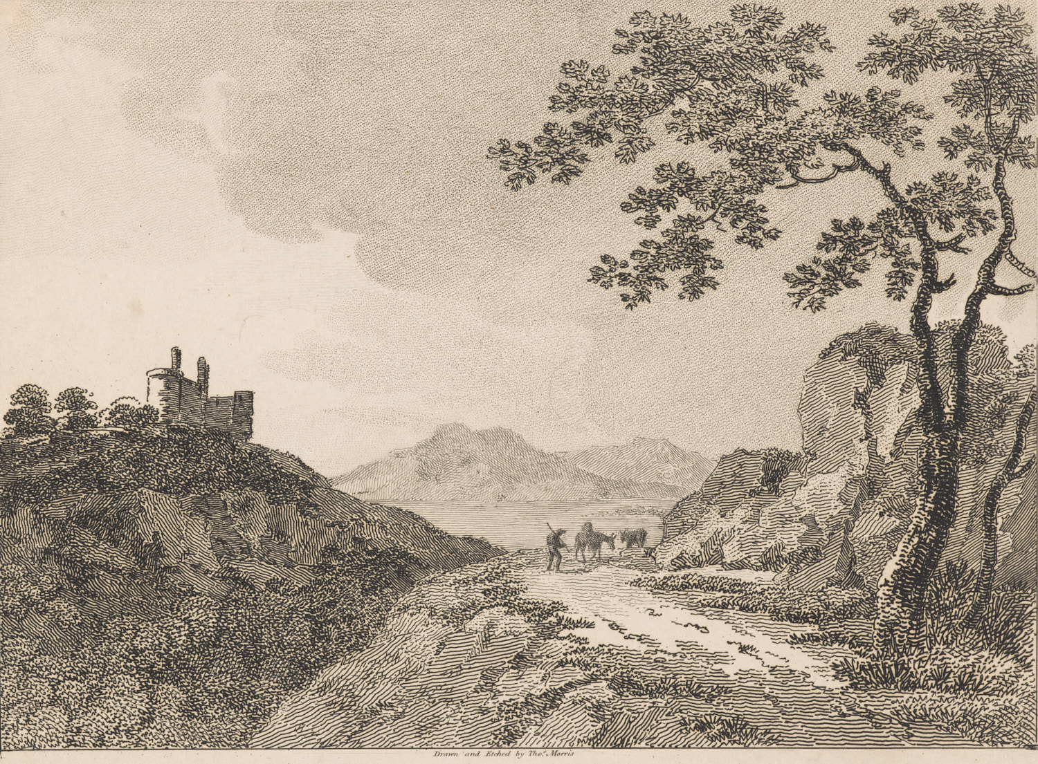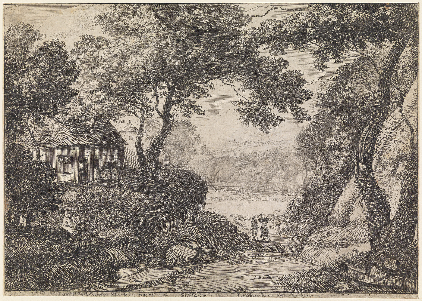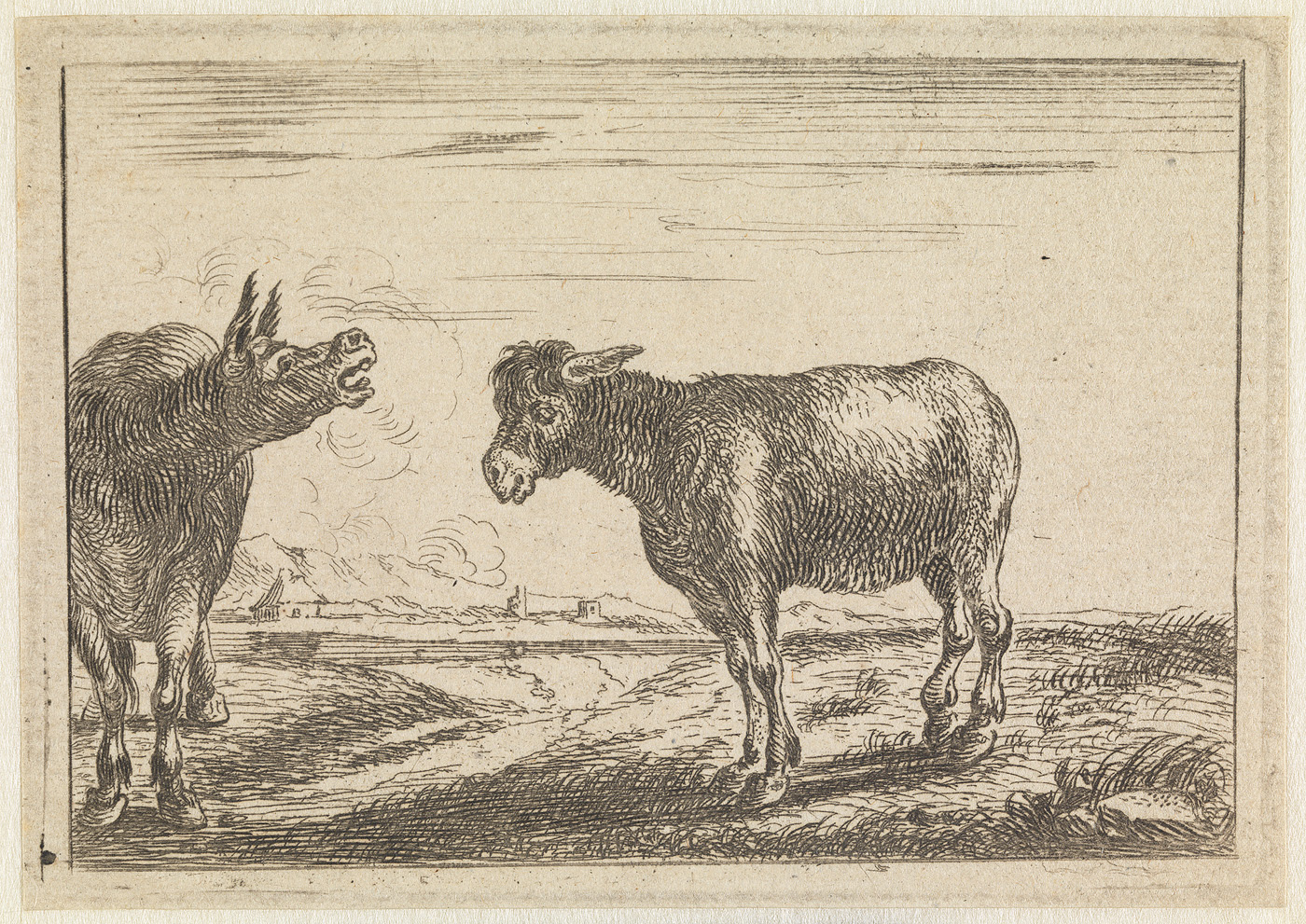 Landschap met twee ezels (prent uit de serie: alcune...