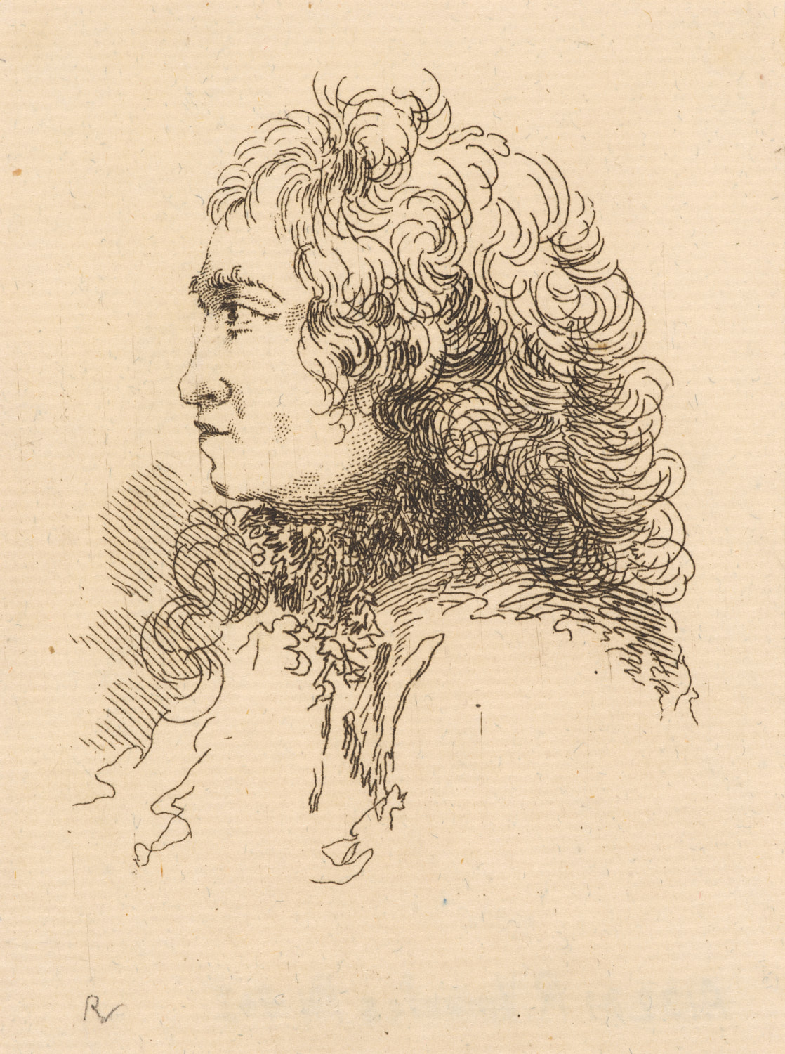 Hoofd van een man en profil naar links. (portret van...