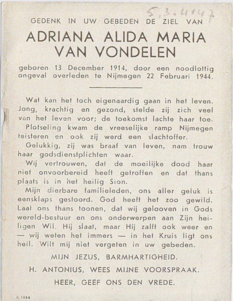 bidprentje (copie) Adriana Alida Maria van Vondelen