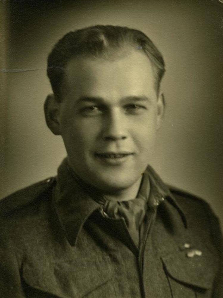 Foto van man in R.A.F. uniform voor romp en vleugels...