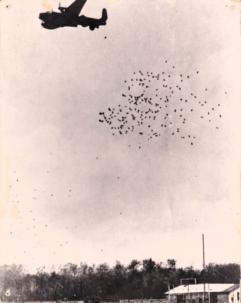 Wilde vlucht boven bevrijd gebied.