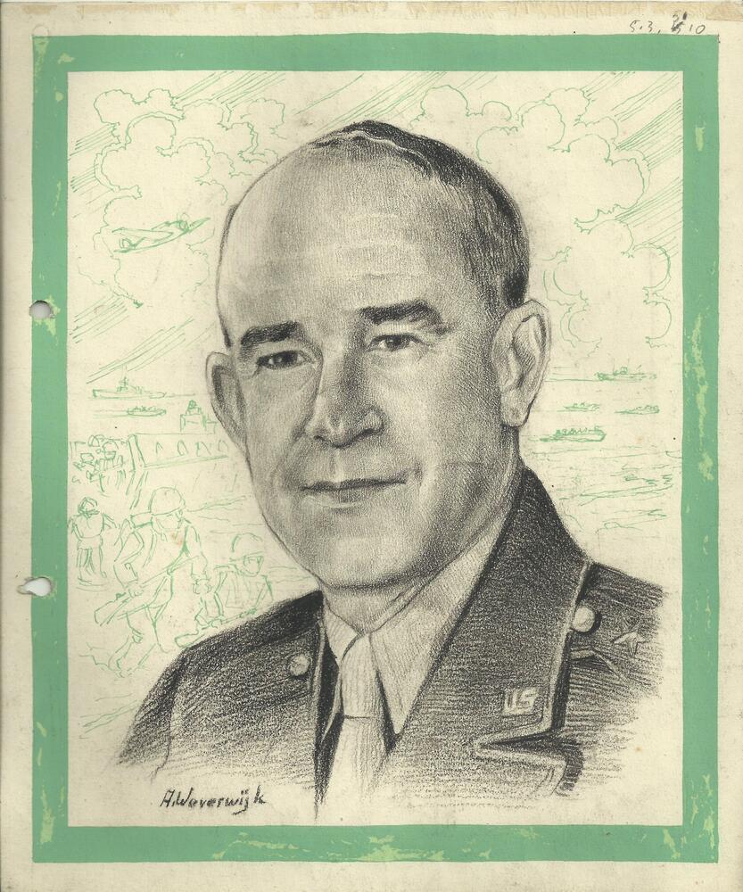 Portret Omar N. Bradley, getekend door A. Weverwijk