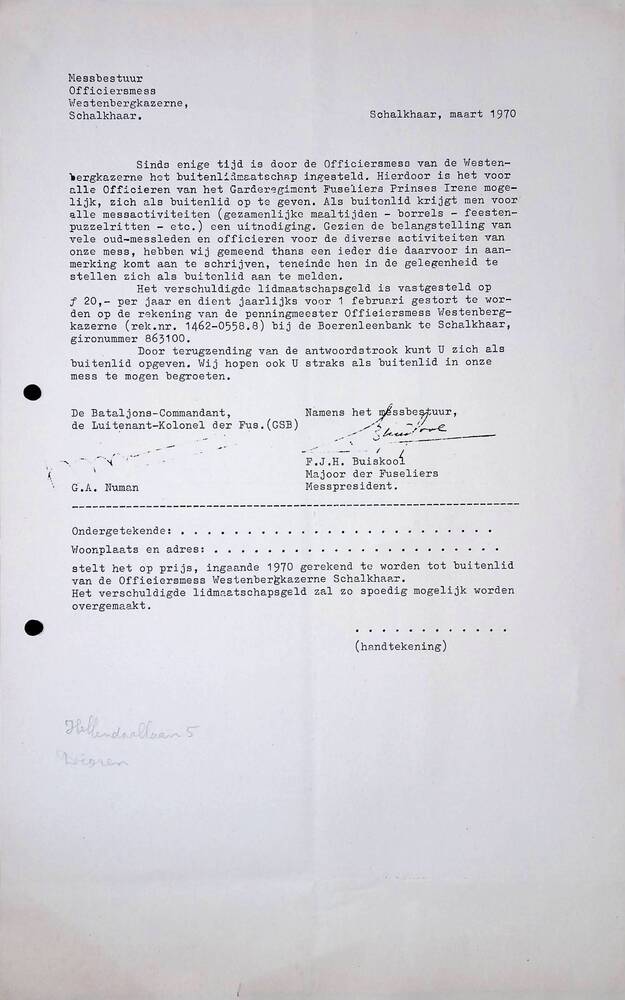 Messbestuur Officiersmess Westenbergkazerne, Schalkh...