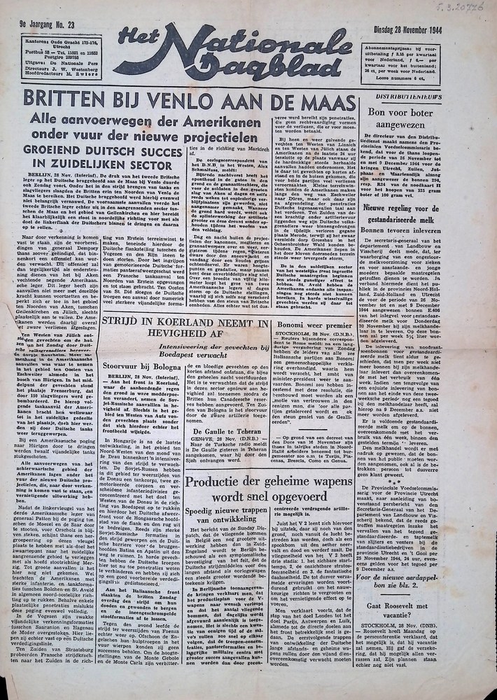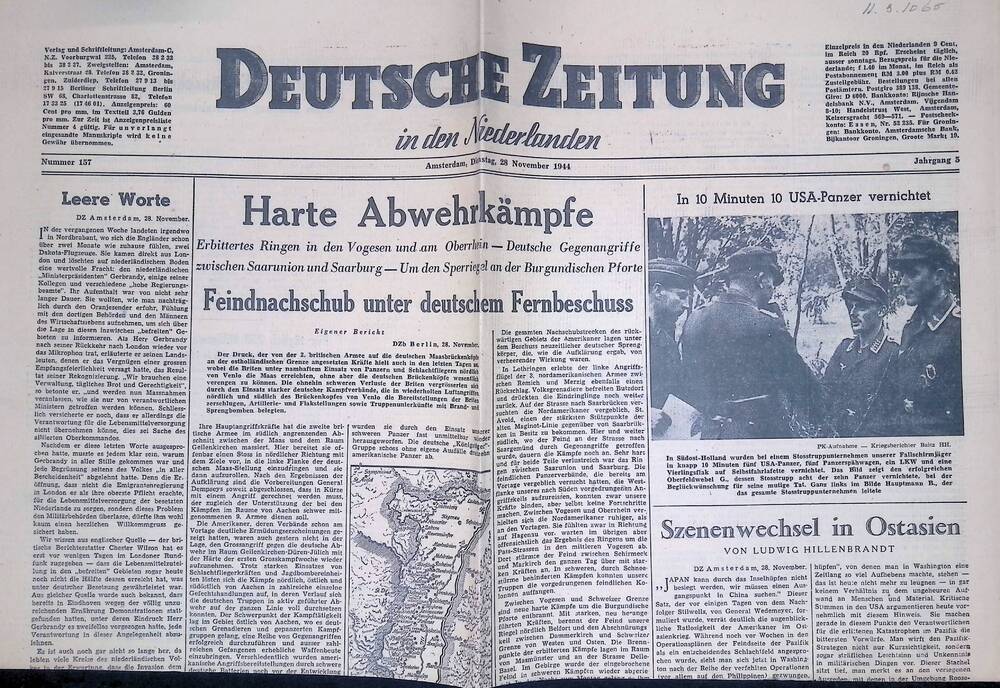 Deutsche Zeitung in den Niederlanden. 28 november 1944.