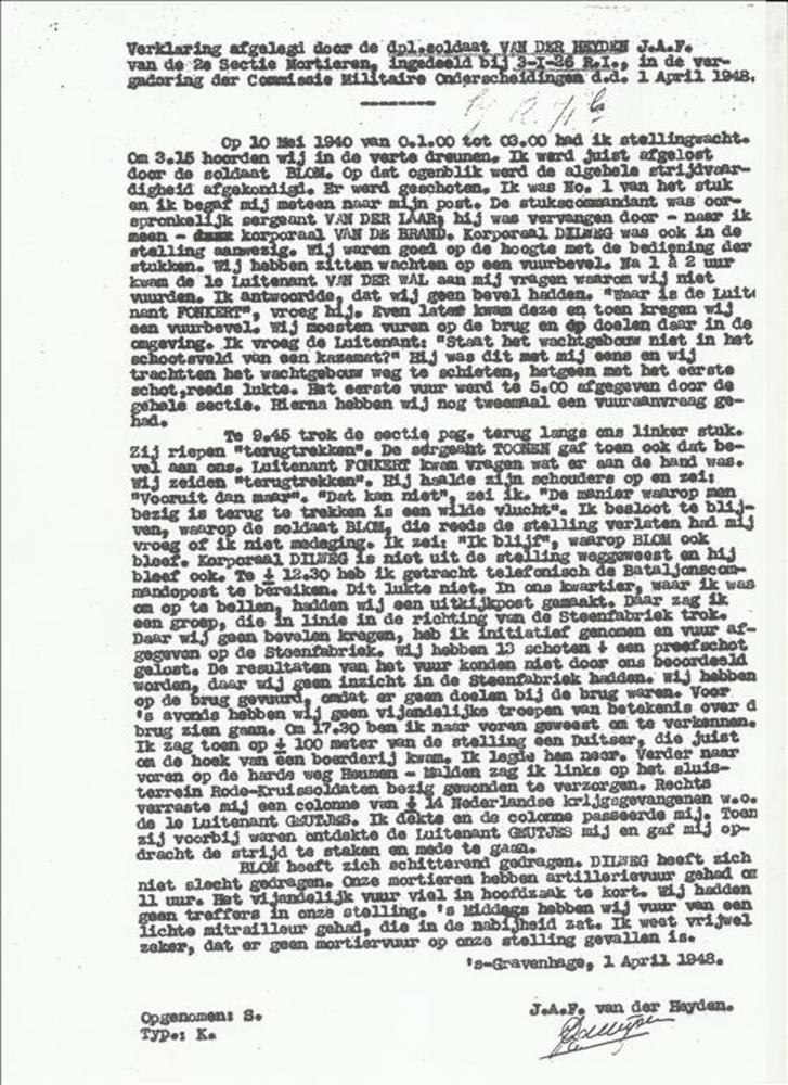 Verklaring van dpl-soldaat J.A.F. van der Heyden 2e ...