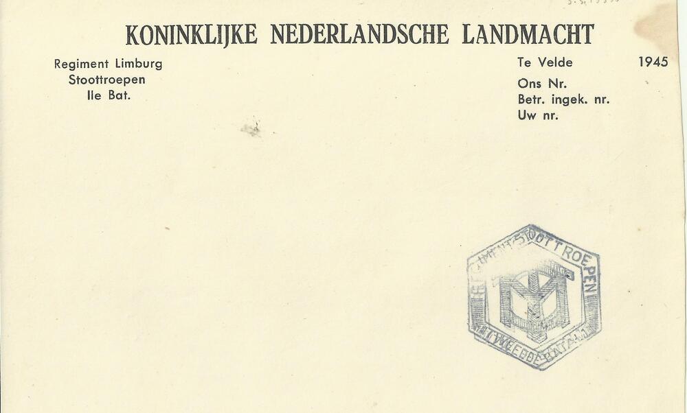 Blanco vel briefpapier van Regiment Limburg Stoottro...