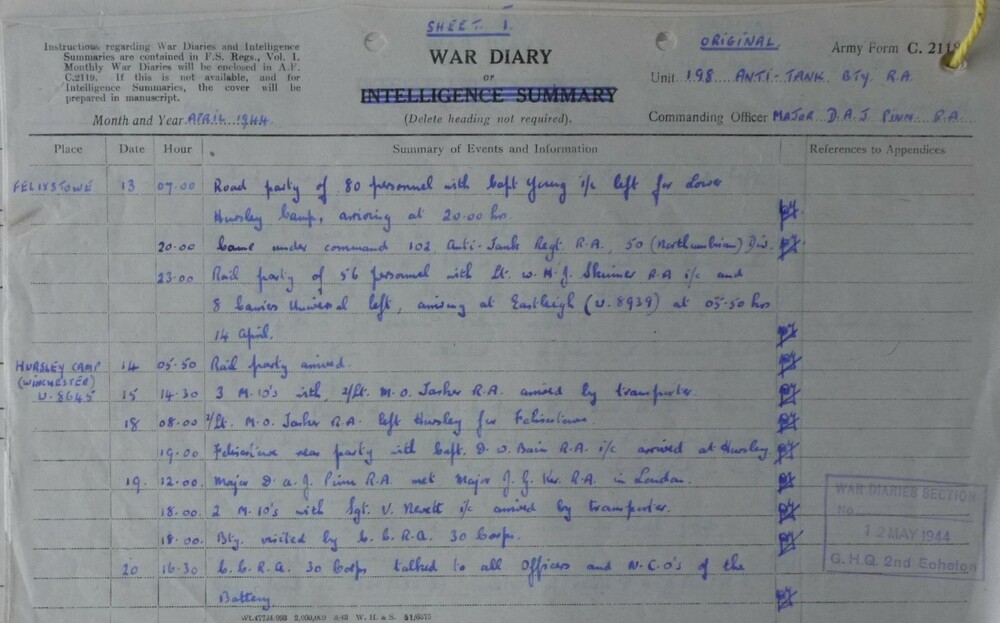 War Diary of 73 Anti-Tank Regiment R.A. van januari ...