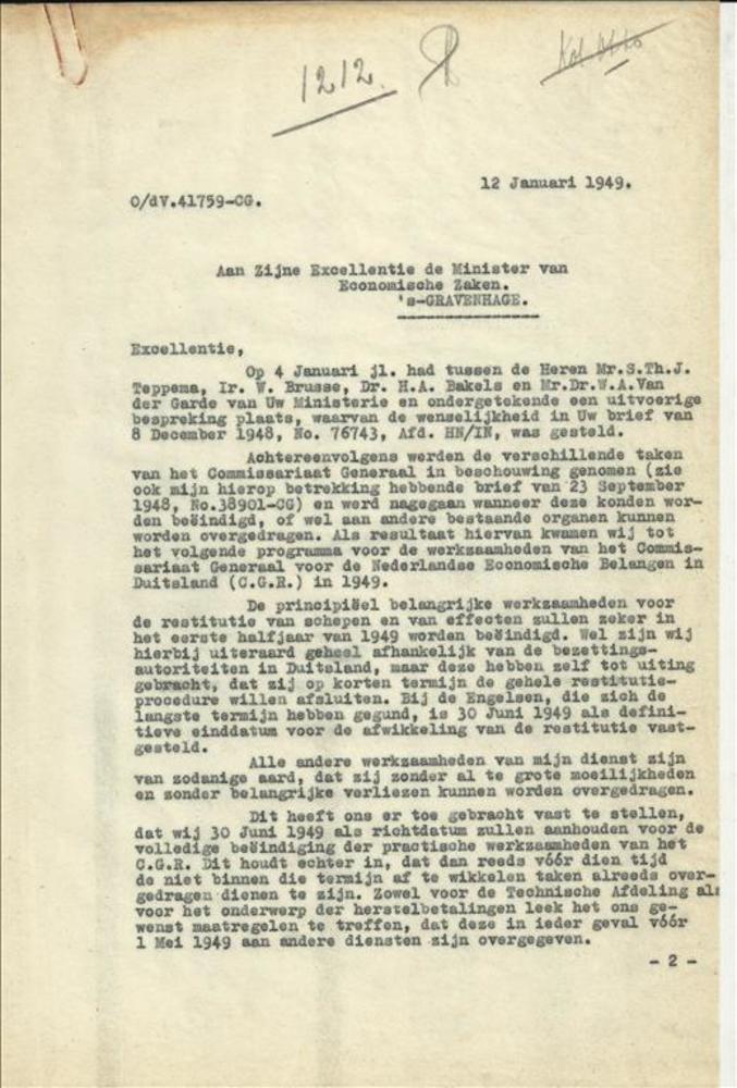 brief van Kol. Otto aan de Minister van Economische ...