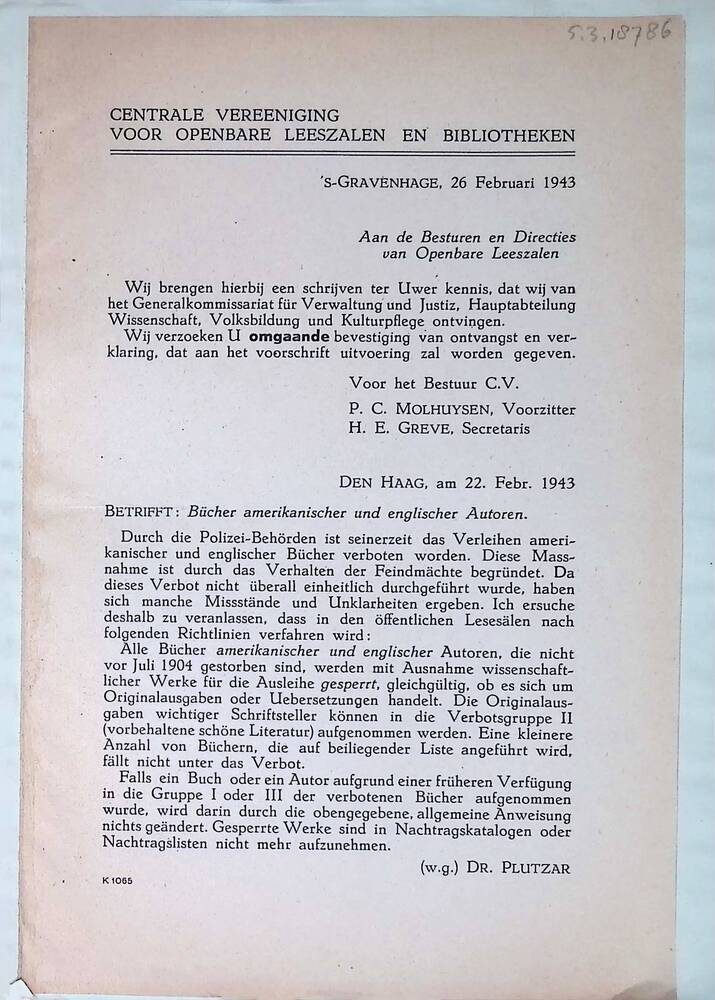 Brief van de Centrale vereeniging voor openbare lees...