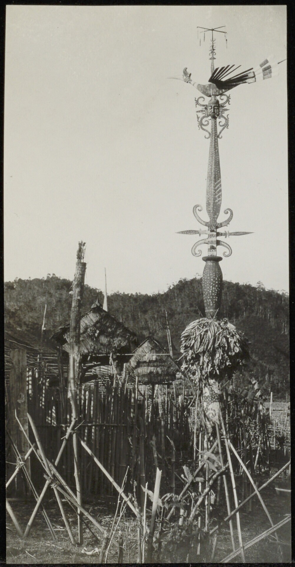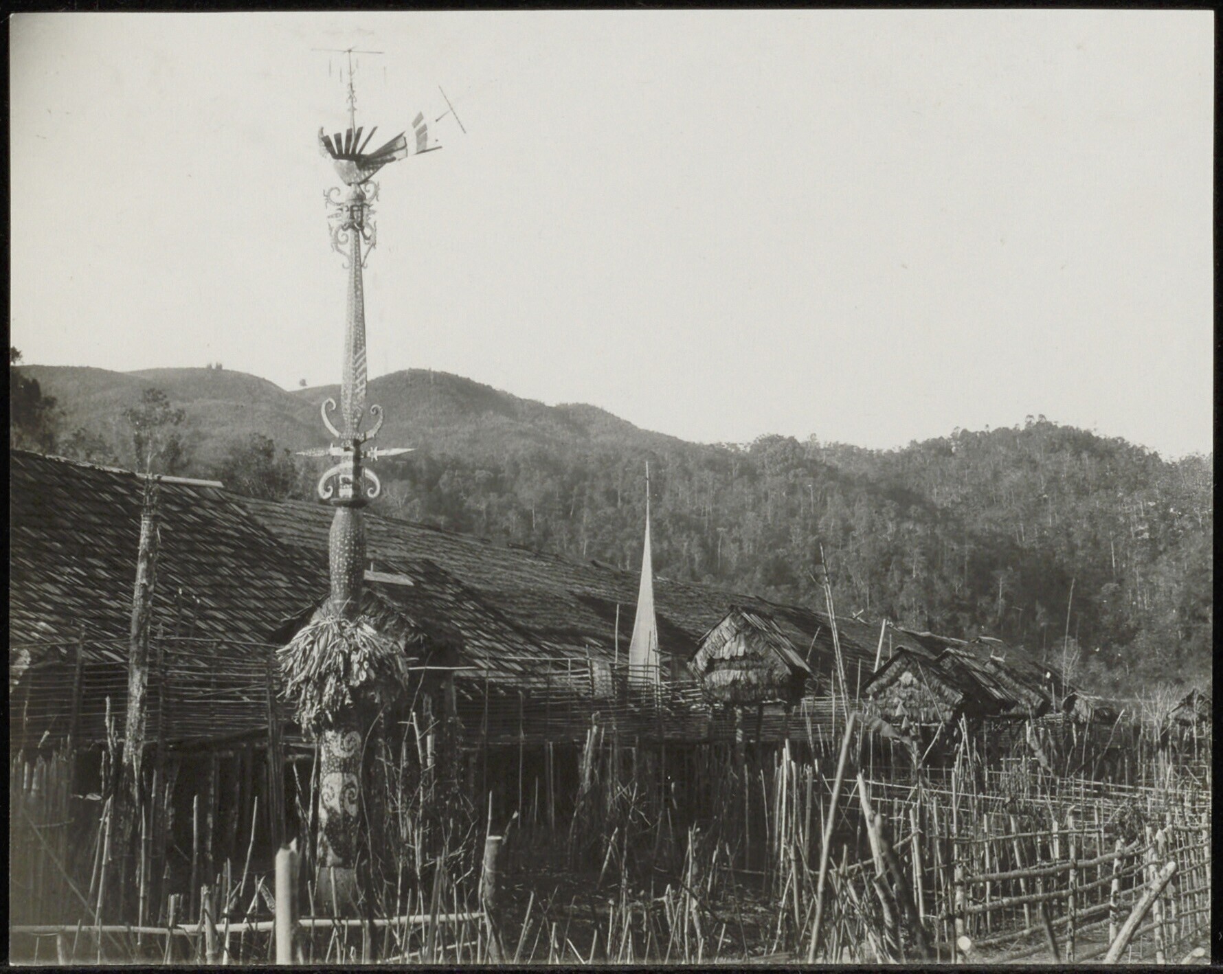 Rituele paal bij Apo-Kayan Dayak kampong