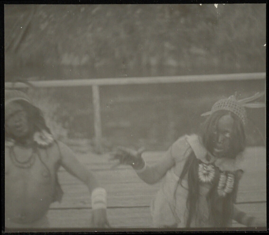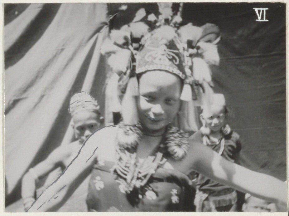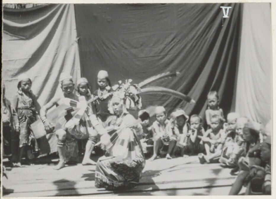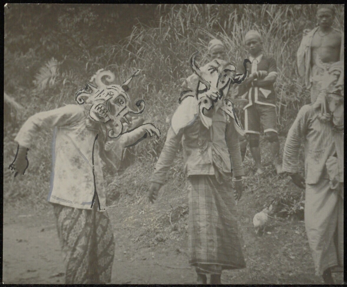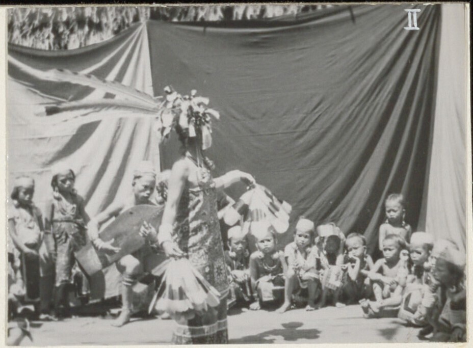 Een danseres. Gemaskerde dans te Ma Djallan. Ze word...