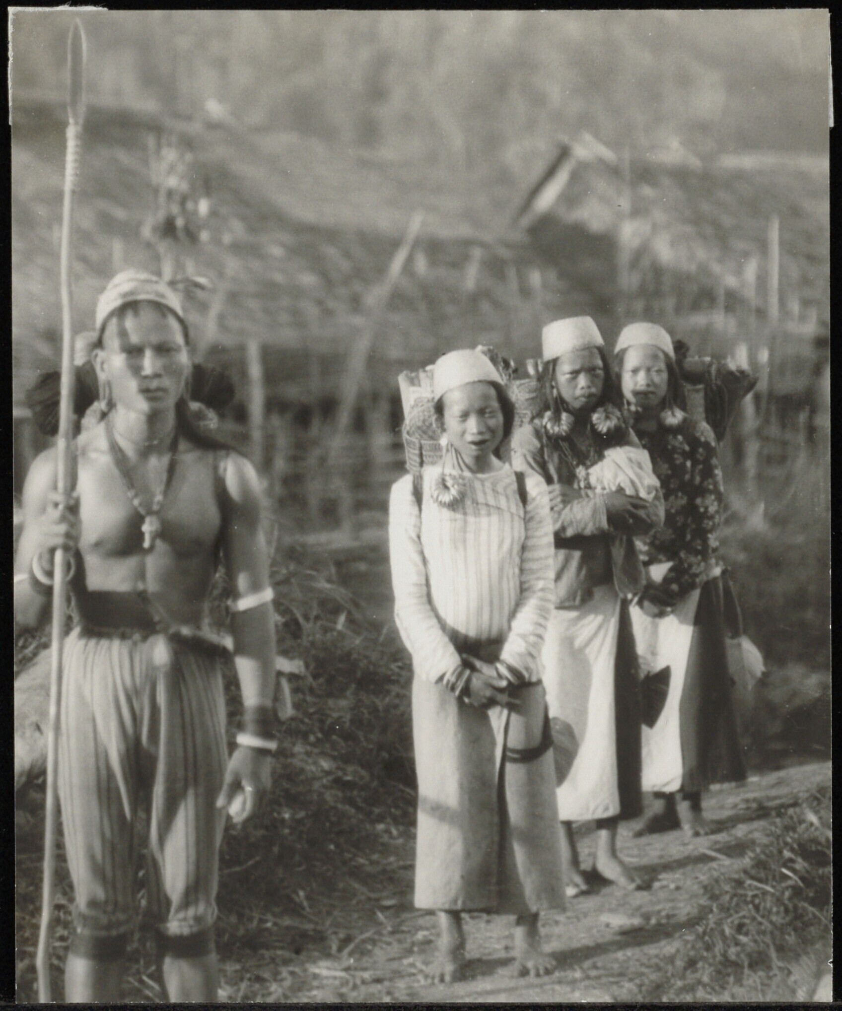 Apo-Kayan Dayak krijger met drie vrouwen
