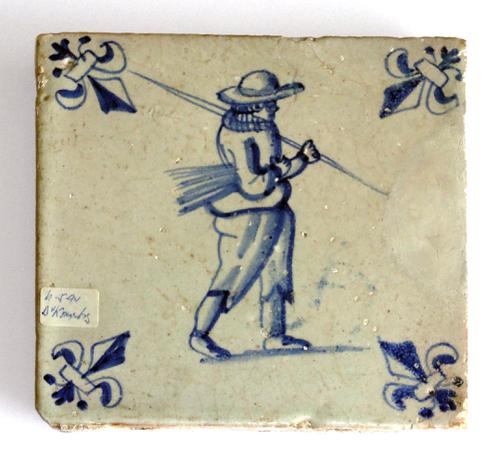 Tegel met naar rechts lopende man. De man draagt e...