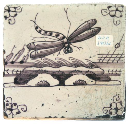 Dieren tegel. Libelle langs de rivier. Mangaan