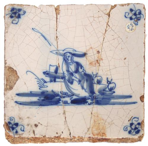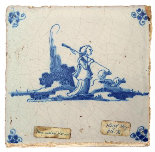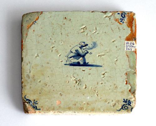 Aardewerk tegel. 'Poepertje’ Zittende, poepende, pi...