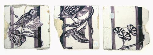 Fragment. Drie mangaan delen. Vogels op takken en bl...