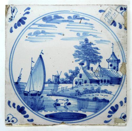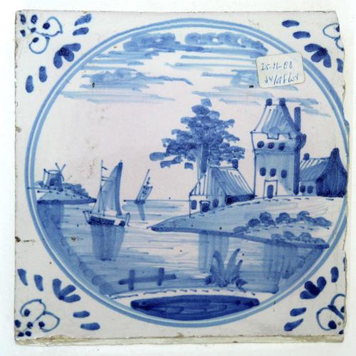 Landschap tegel. Woning langs de rivier