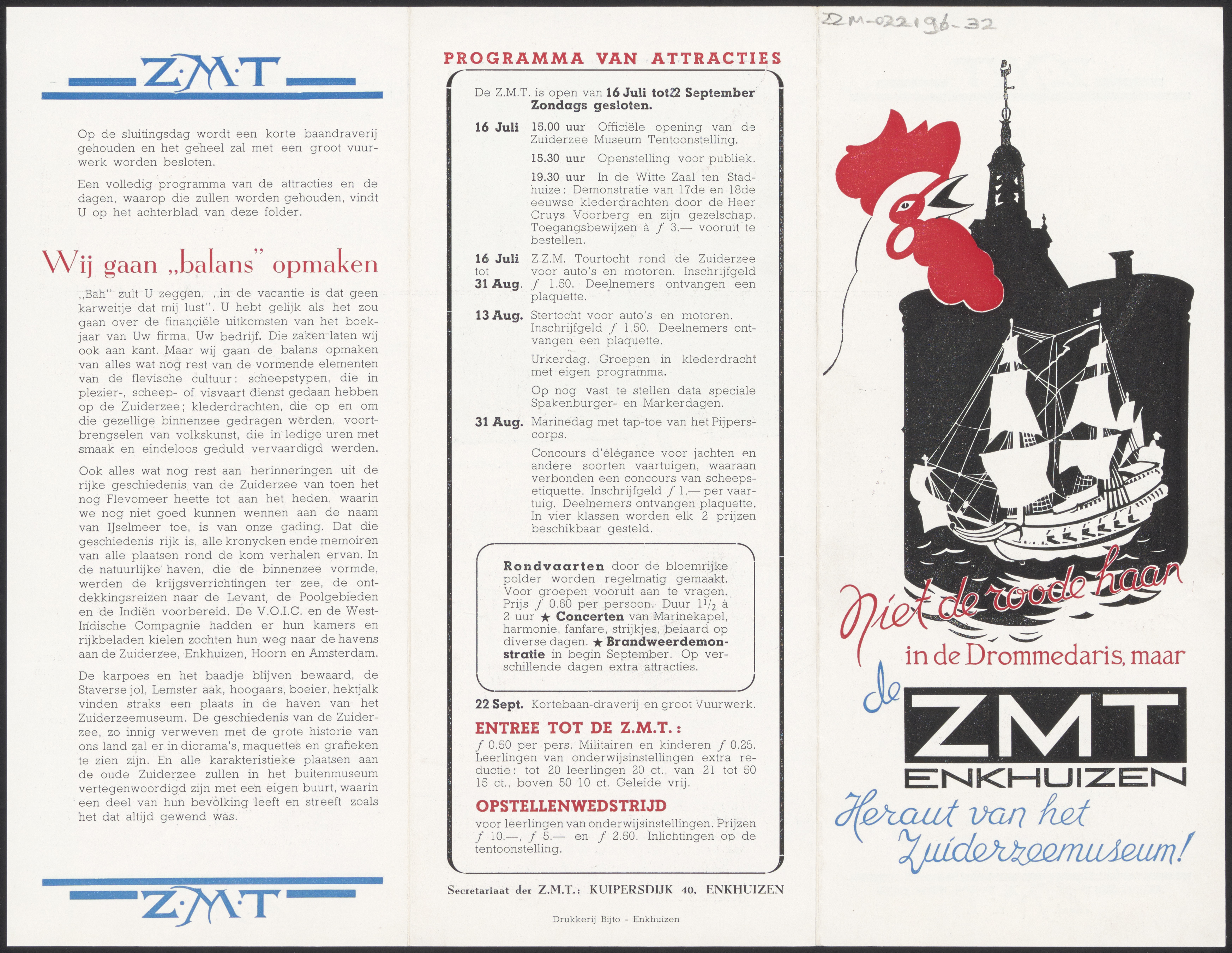 Nederlandse folder van de ZMT Enkhuizen, 16 juli - 2...
