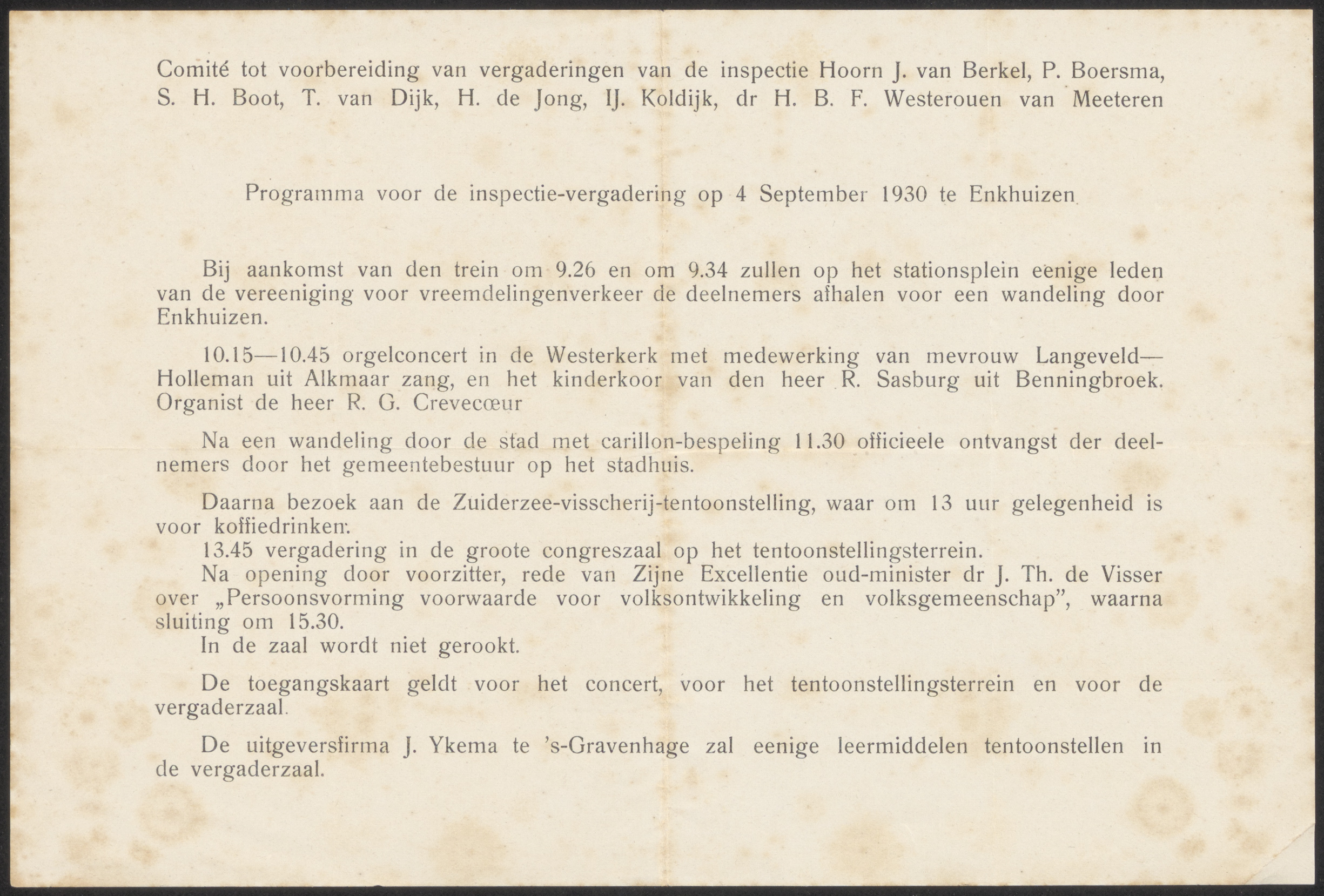 Programma van feestelijkheden gedurende de Zuiderzee...