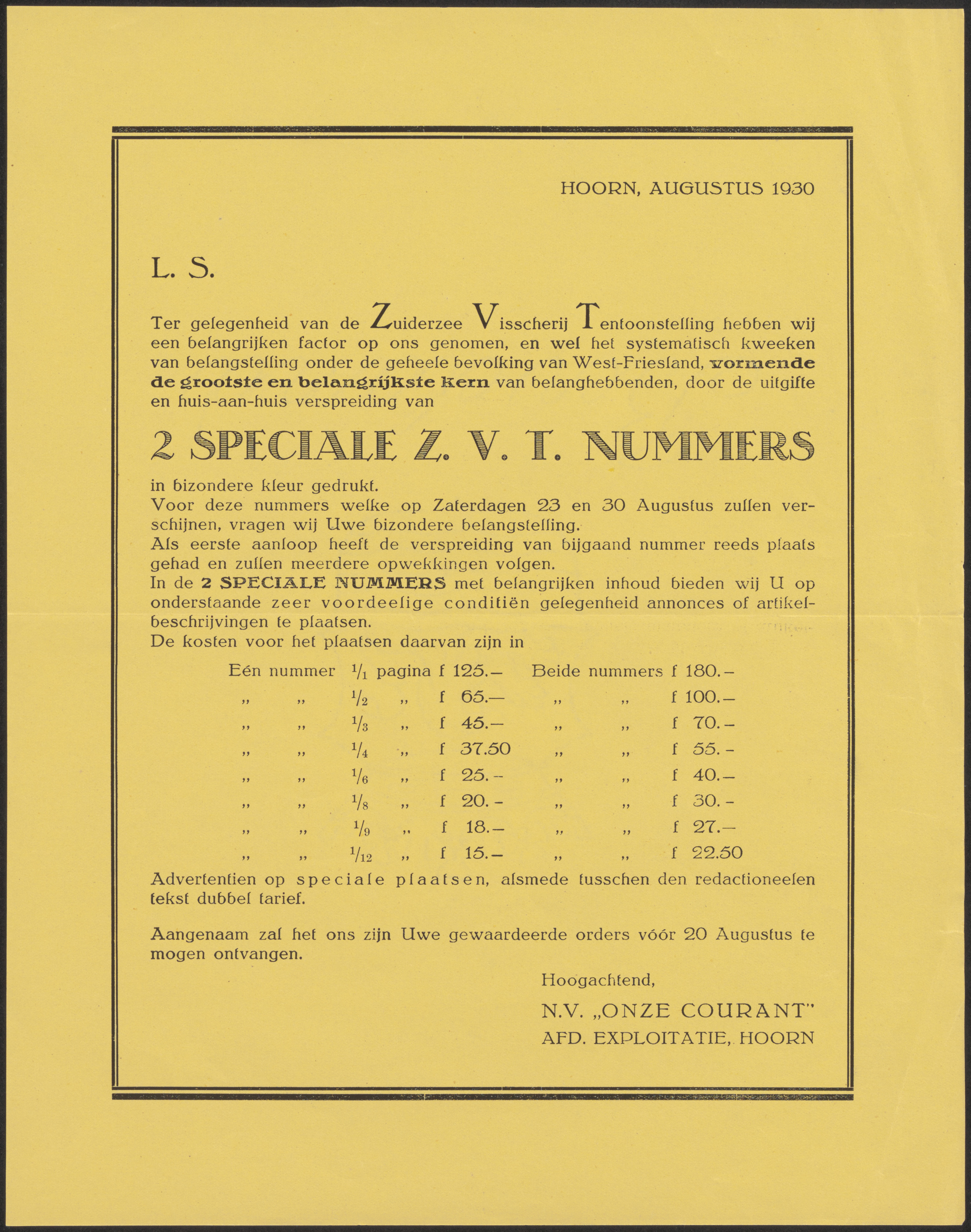 Prospectus van Zuiderzee-visscherij tentoonstelling ...
