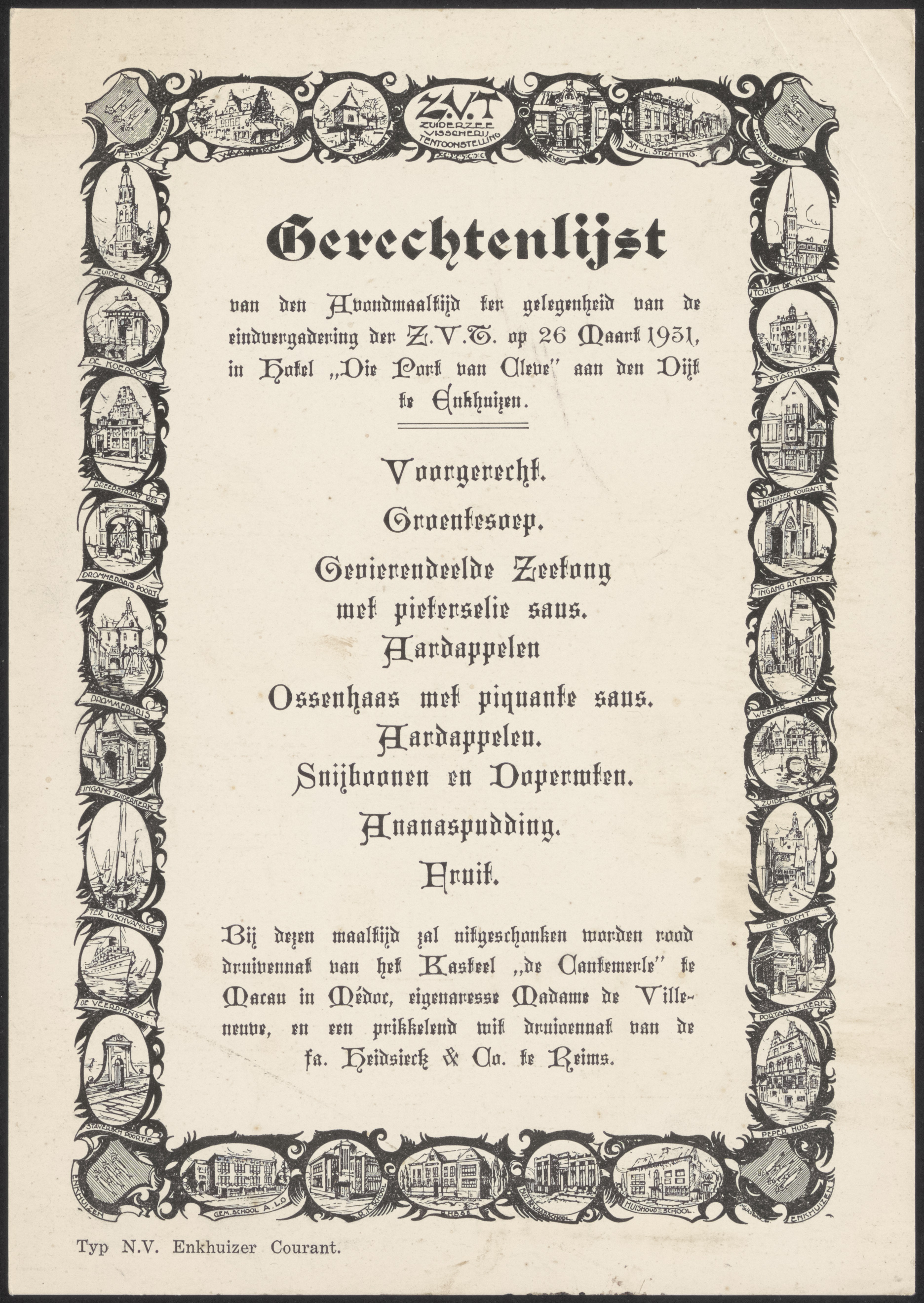 Menukaart van den avondmaaltijd ter gelegenheid van ...