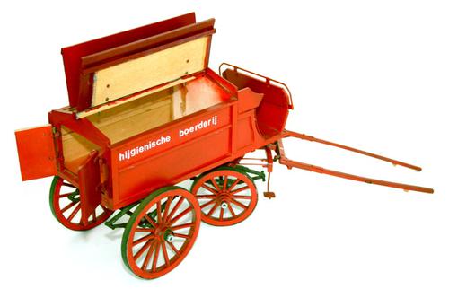Miniatuur boerenmelkwagen met tekst: GEZONDHEIDSMELK