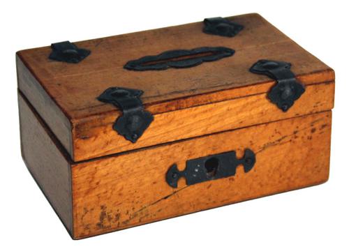 Houten spaar kistje.