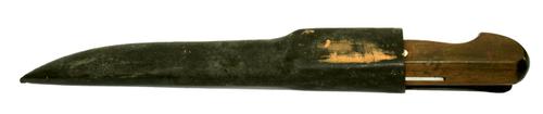 Mes. Knip mes met houten heft waar in beeldmerk WF,