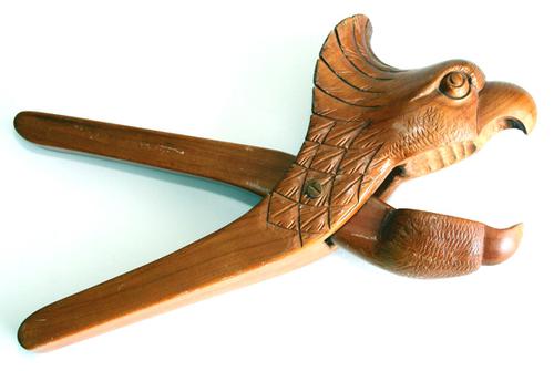 Houten notenkraker, kop van een vogel