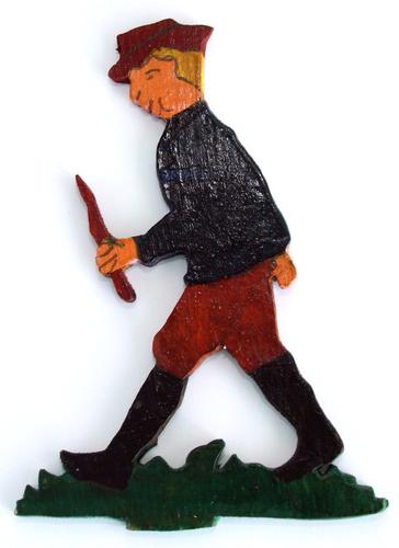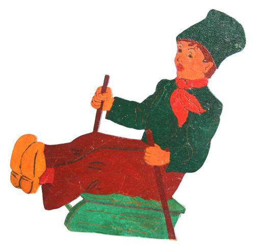 Gezaagde voorstelling mannetje op prikslee