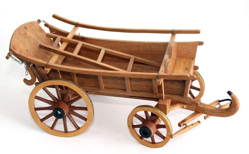 Miniatuur boerenwagen met korte naar voren gekrulde ...