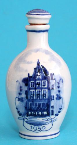 BOLS, Delfts blauw likeurkruikje met Amsterdams huisje.